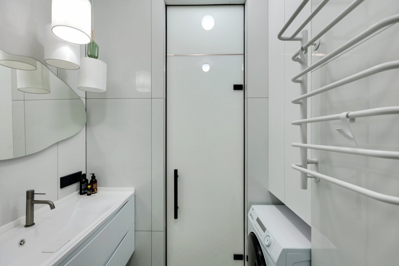 Внутри продумано всё до мелочей для комфорта гостей, включая большую и удобную кровать, мягкий диван, телевизор, кондиционер, вместительные шкафы, различные сценарии освещения, раздельный санузел с душевой и стиральной машиной.