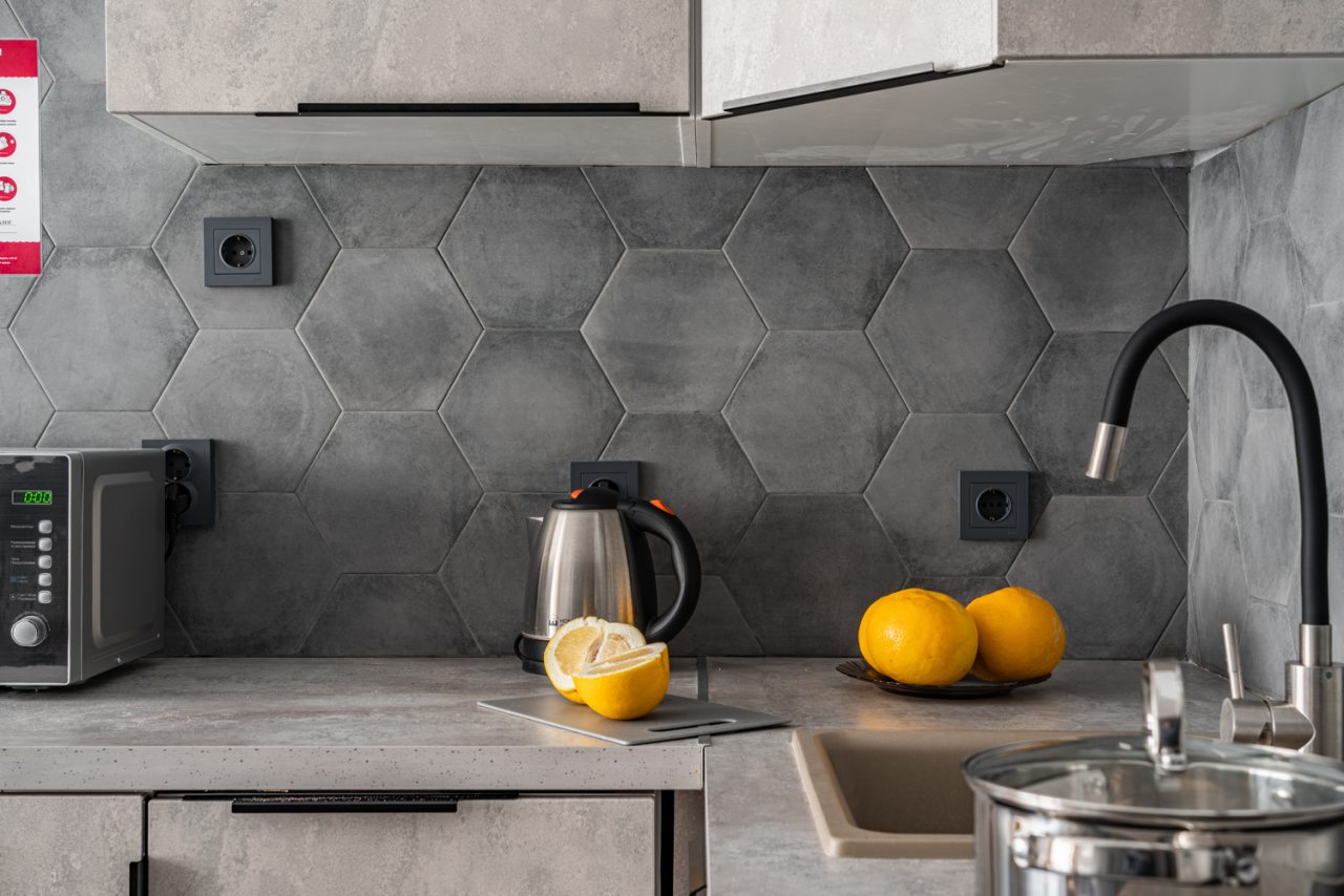 Кухня имеет комплект гарнитура, обеденный стол и всю необходимую бытовую технику. В доступности продовольственные магазины, кондитерская и кафе.