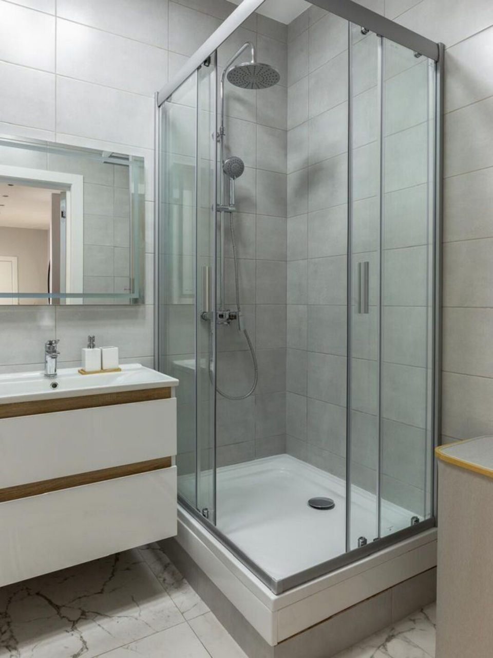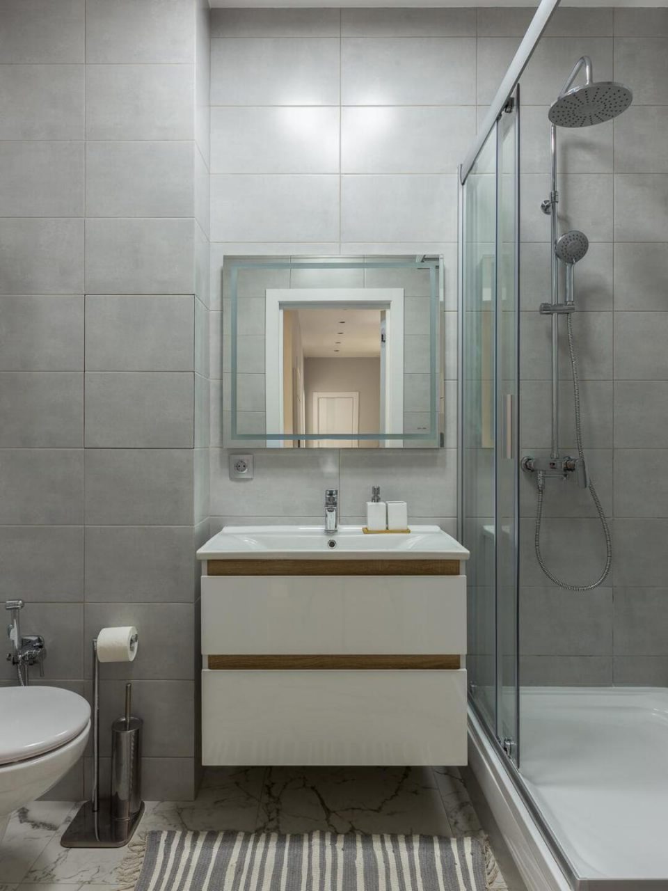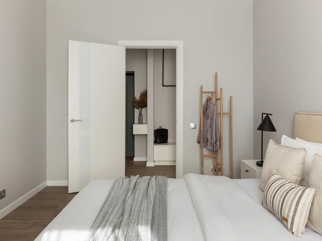 Внутри вас ожидает двуспальная кровать, удобный диван, просторная лоджия, вместительная гардеробная, телевизор, письменный стол, гладильные принадлежности, а также санузел с душем и гигиеническими принадлежностями.