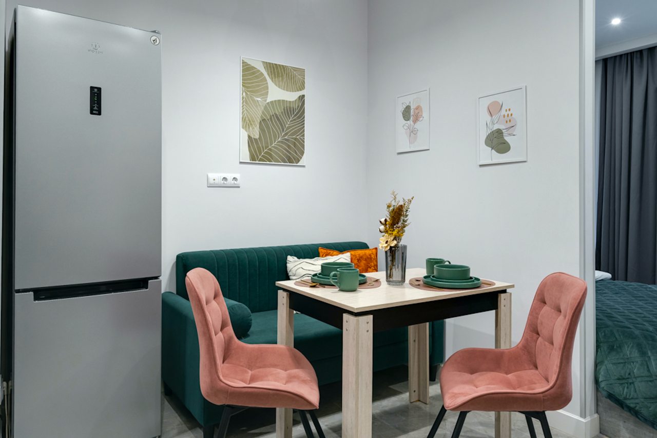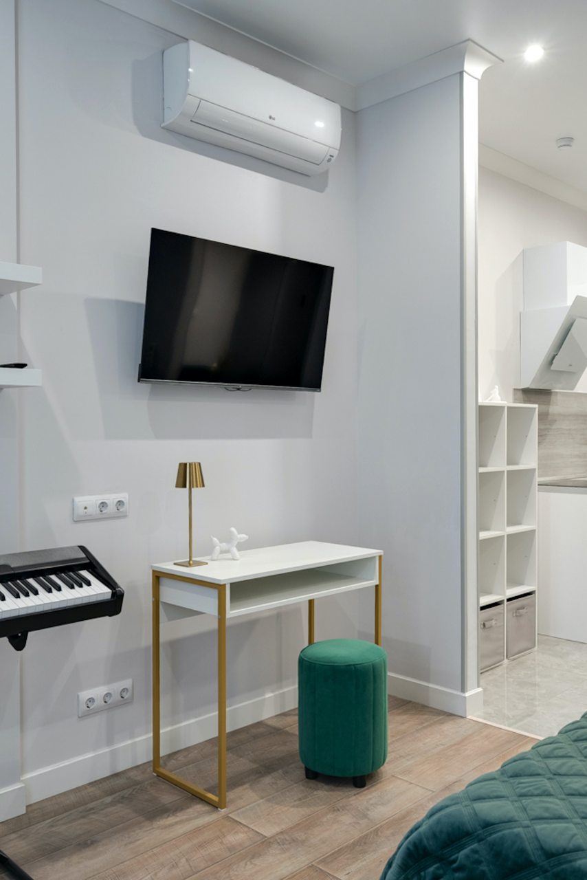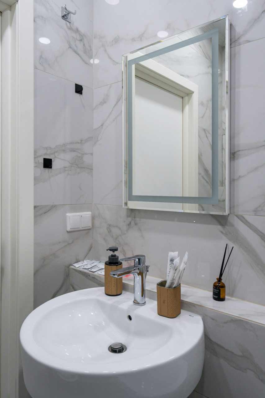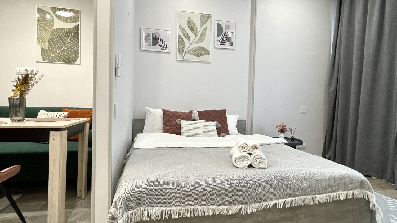 Стильные апартаменты оборудованы удобной двуспальной кроватью, шкафом-купе, диваном, вешалками для верхней одежды, телевизором, высокоскоростным интернетом, кондиционером, кухонной зоной и собственной ванной комнатой. Санузел оснащен современной сантехникой и гигиеническими средствами.