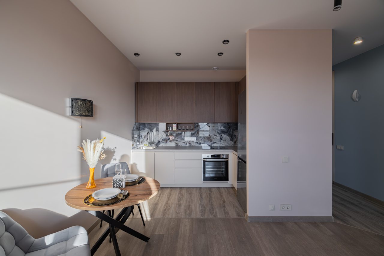 Приятная и современная квартира недалеко от метро. Располагается далековато от центра, но метро спасает. Кухня-гостиная студийного типа, но учитывая еще одну комнату, здесь достаточно много места, это однозначно плюс! А также есть кондиционер, который исправно работает. Чистые полотенца и постельное белье предусмотрено.