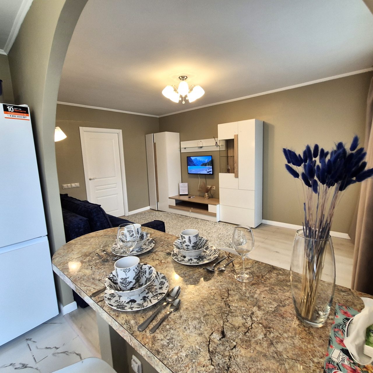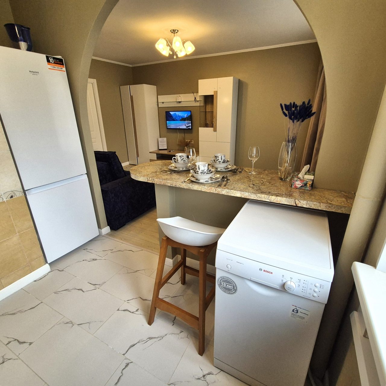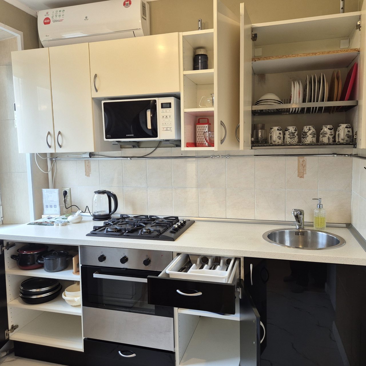 На уютной кухне будет приятно заняться приготовлением любимых блюд, так как в наличии есть всё: от посуды, духового шкафа и плиты до СВЧ и чайника.