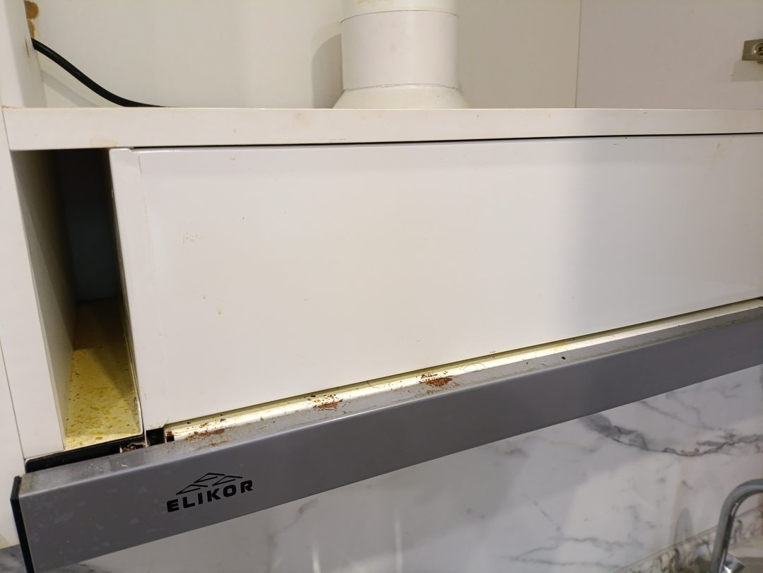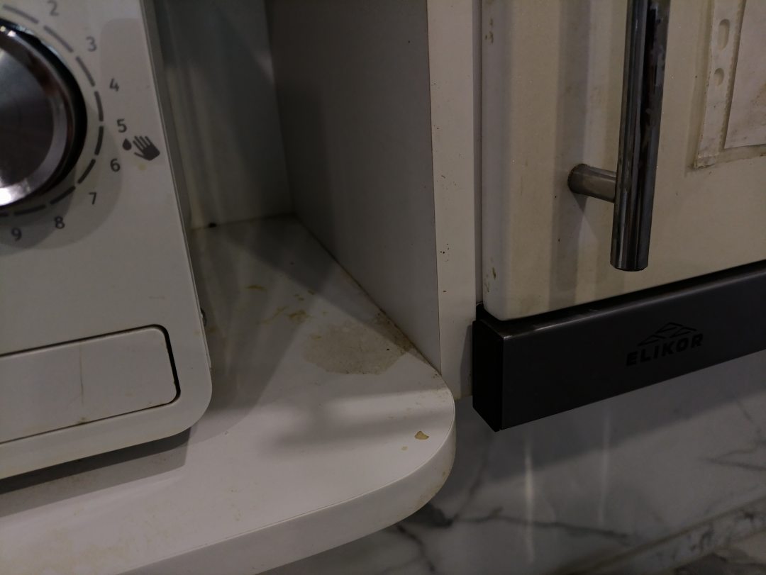 Из недостатков: это не разгром, но очень грязно. Полы более менее, но все остальные поверхности ужас. Кухню вытирали явно половой тряпкой, все в разводах, стол пришлось мыть самостоятельно. Варочная панель в грязи. Копеечный плинтус за варочной панелью поврежден.