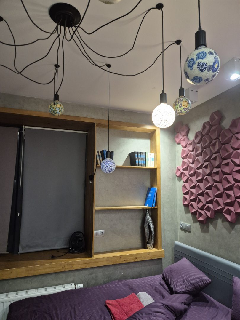 Очень уютная квартира. Кровать стоит прямо у окна, благодаря чему можно наслаждаться потрясающим видом из окна. Было чисто. Постельное белье предоставили свежее. Минусов не нашли.