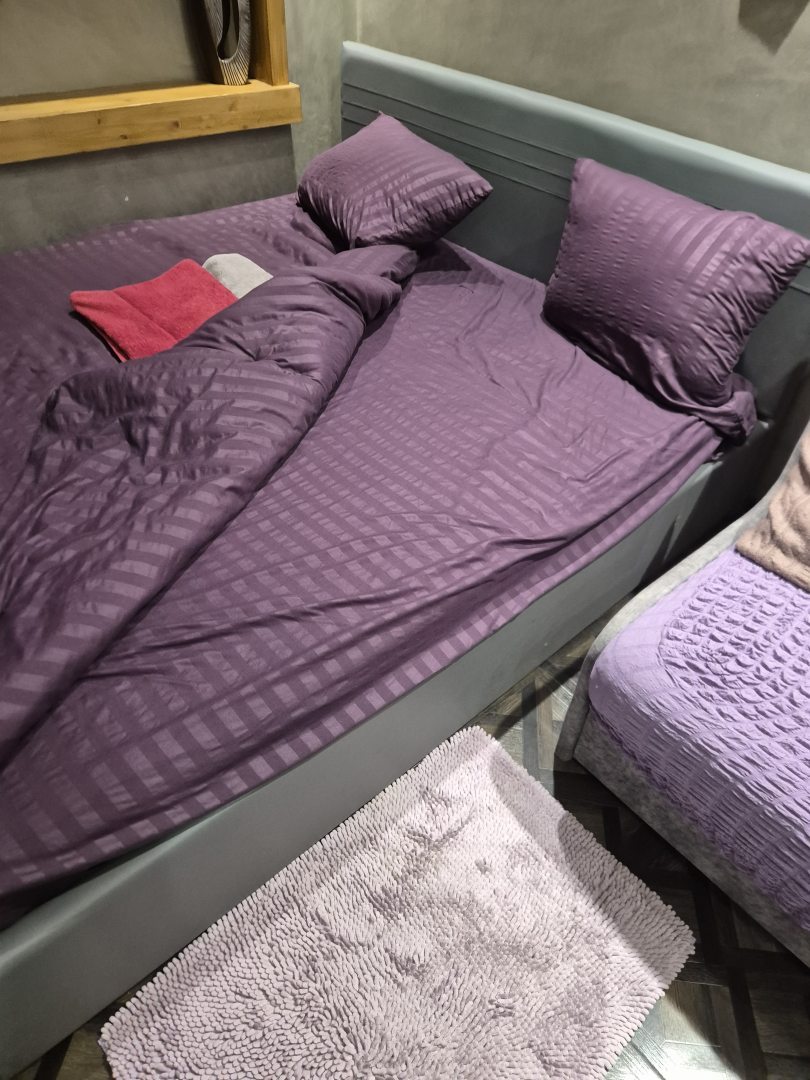 3. Посуда была грязной, пришлось перемывать. Постельное белье и полотенца далеко не первой свежести, с дырками, потертые. Одеяло в пятнах.