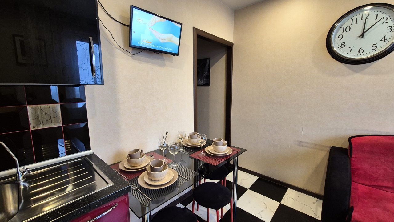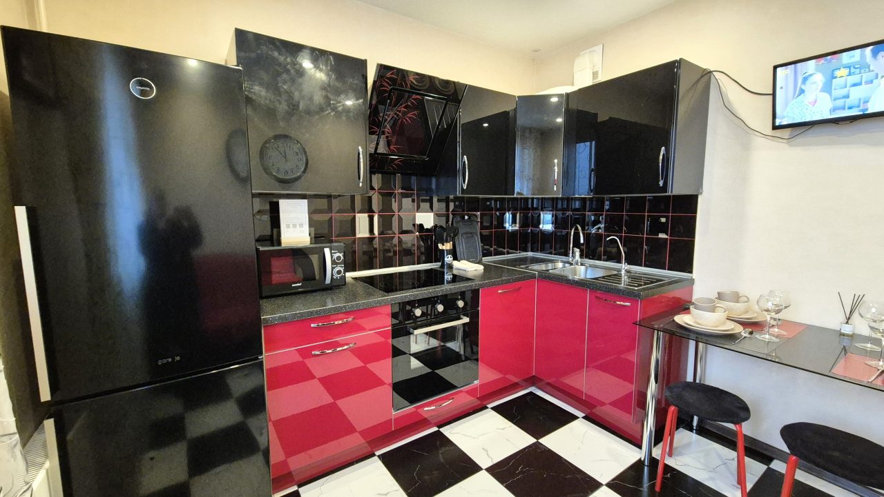 На кухне гости найдут необходимую бытовую технику, посуду и кухонные принадлежности. Неподалеку работают продуктовые магазины и кофейни.