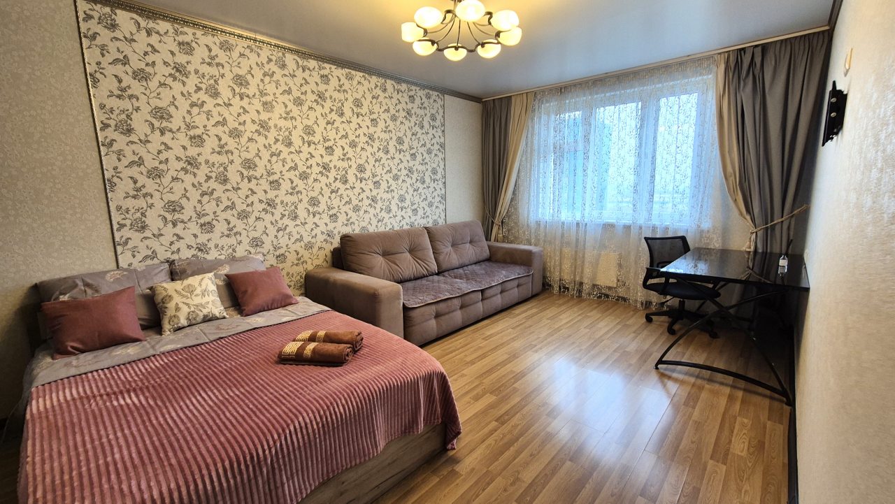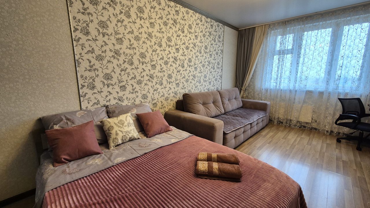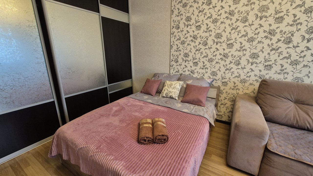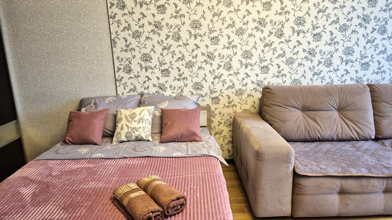В уютной квартире имеется двуспальная кровать и диван, шкаф, стиральная машина, балкон, телевизор, беспроводной интернет. Предоставляются средства гигиены и набор полотенец.