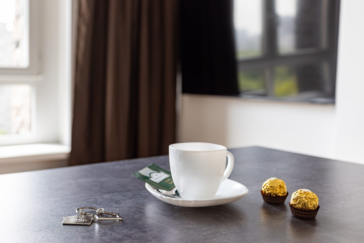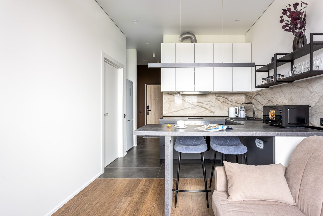 Кухня порадует вас наличием духового шкафа, варочной панели, СВЧ-печи, посуды. Таким образом, вы сможете готовить любимые блюда каждый день. Рядом находятся кофейня, ресторан «Garden» и другие заведения питания.
