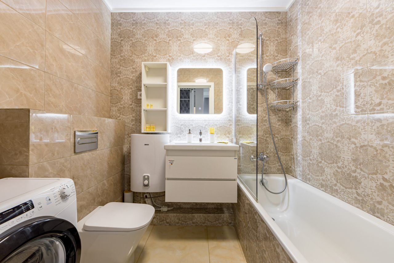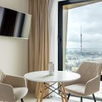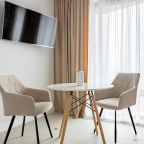 Для отдыха и проживания предлагаются современные апартаменты, которые полностью укомплектованы для вашего комфорта. Расположитесь в просторной гостиной, где есть плазменный телевизор, удобный диван и туалетный столик. Имеется личная ванная комната с косметическими принадлежностями и набором полотенец.