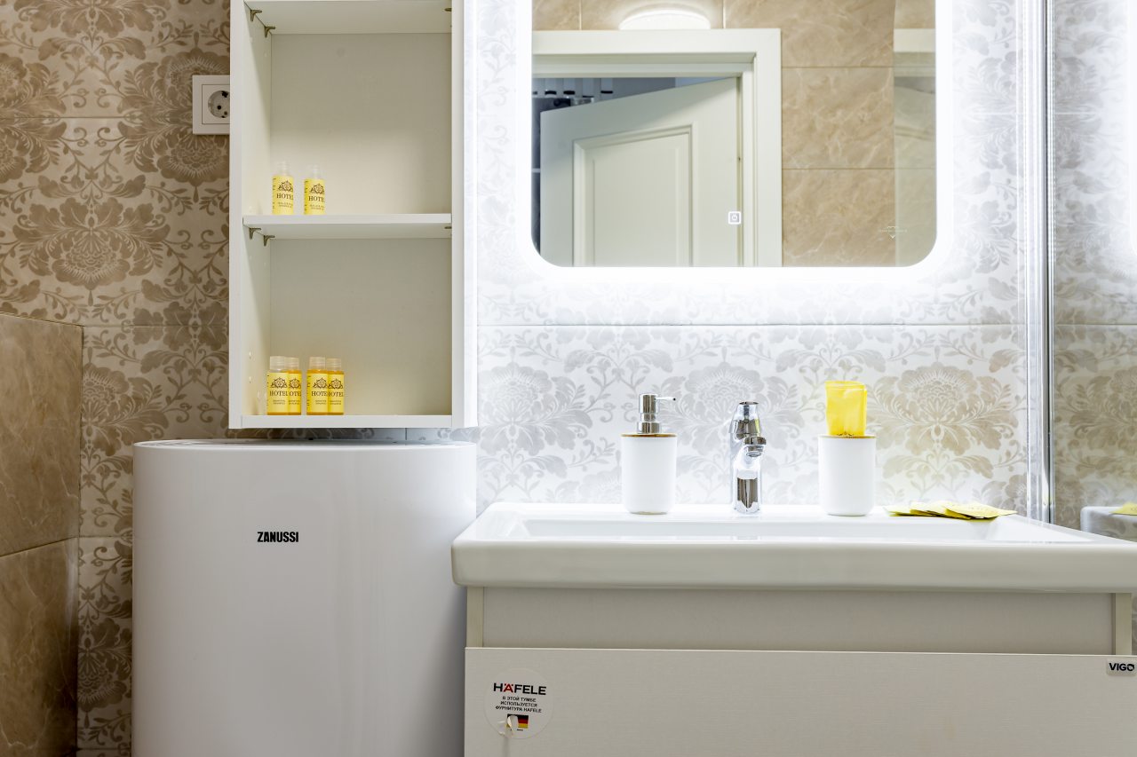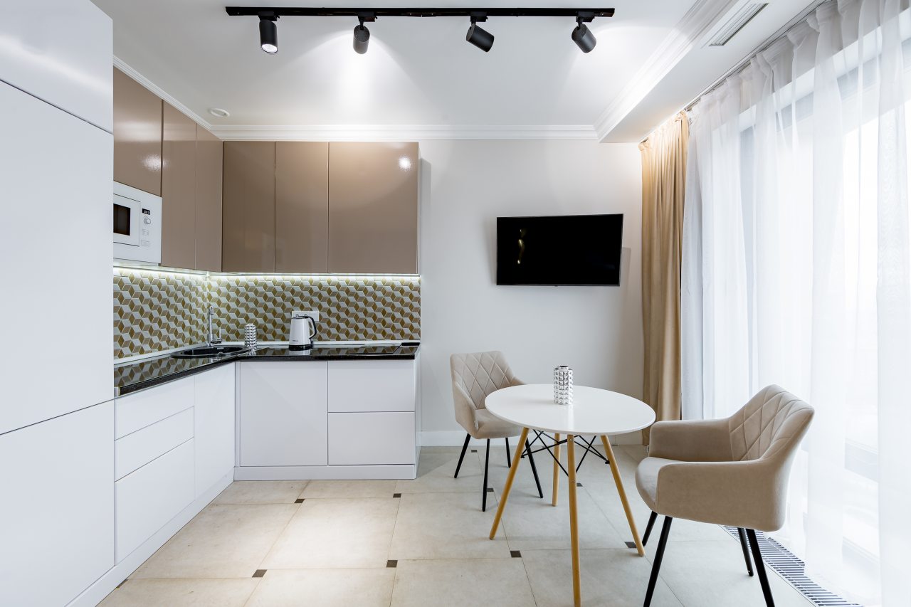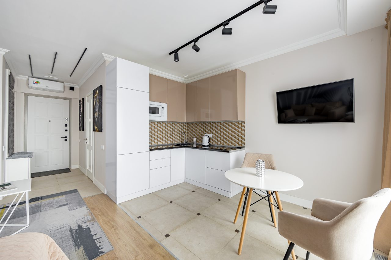 На кухонной зоне вы можете готовить свои любимые блюда и наслаждаться панорамными видами на город. Поблизости работают супермаркеты, кафе и рестораны.