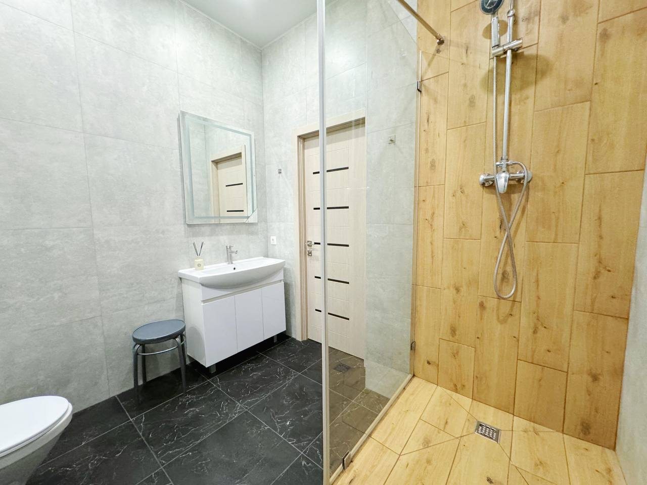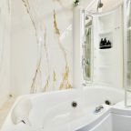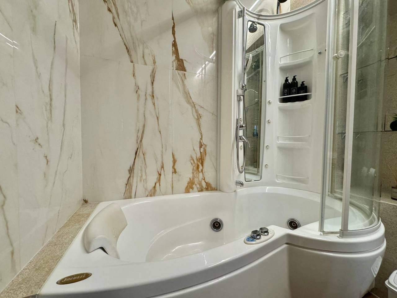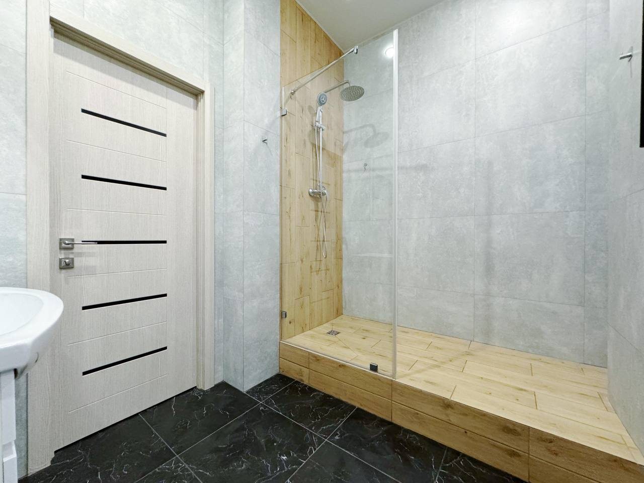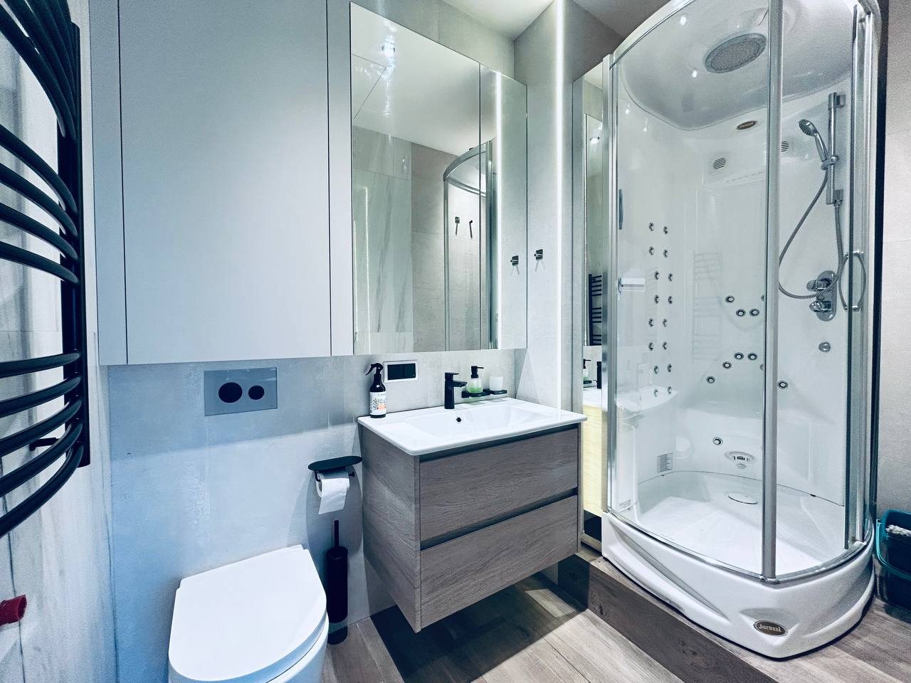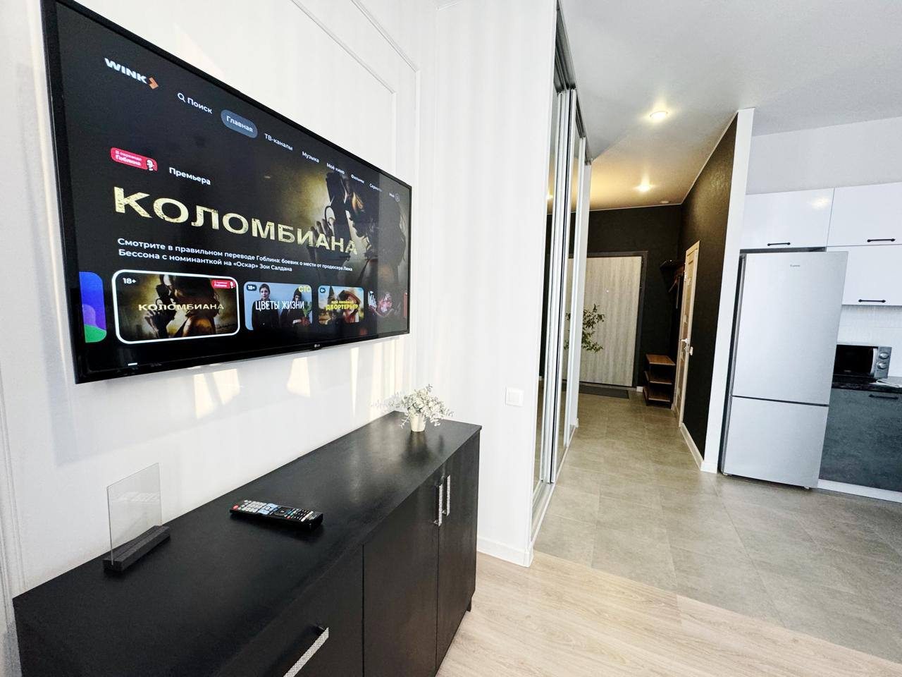 В апартаментах есть: ЖК-телевизор с игровой приставкой, комод, диван, кровать, отдельная ванная комната с душевой кабиной, туалетом и раковиной.
