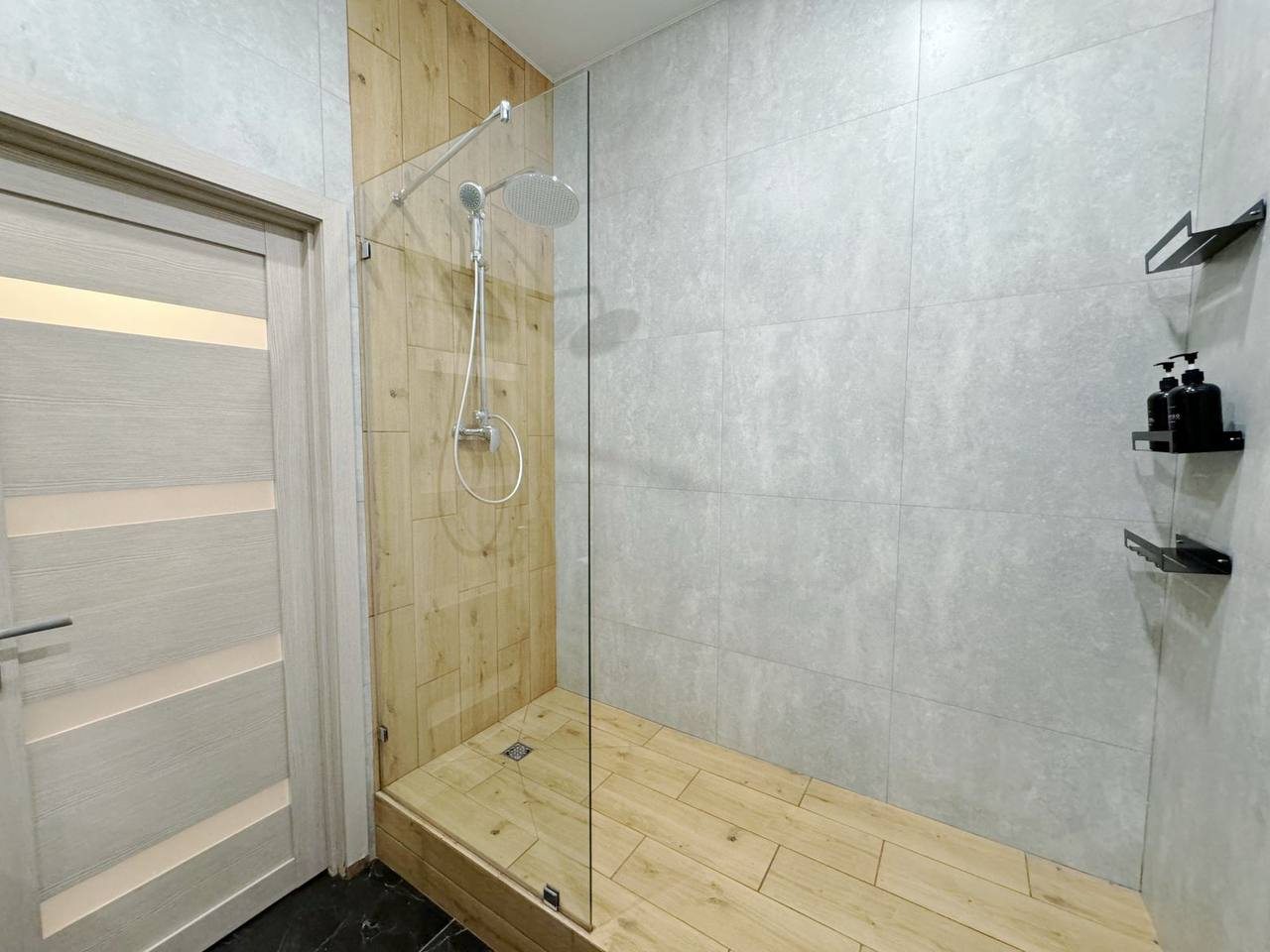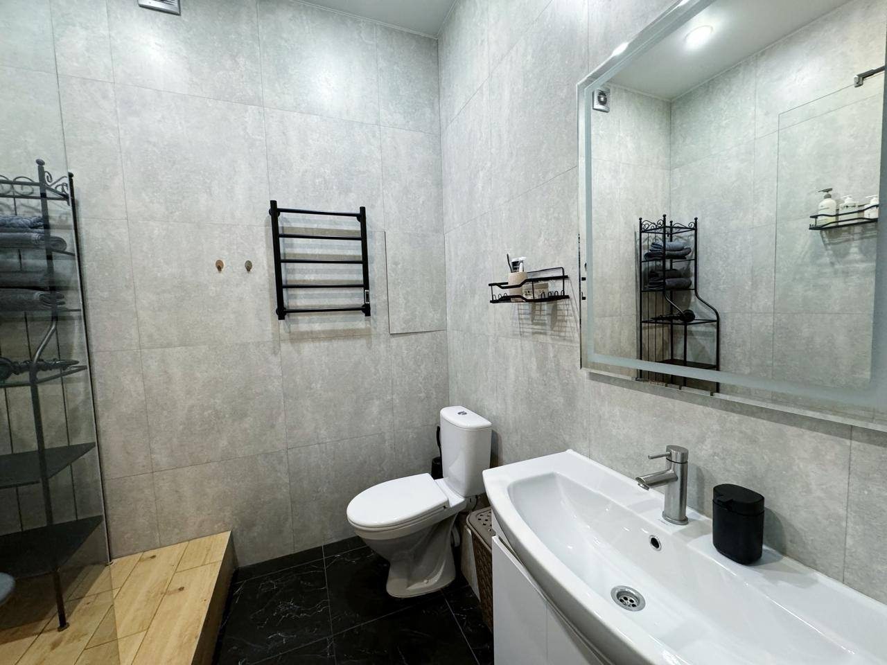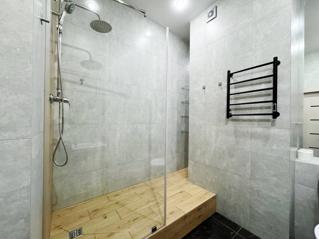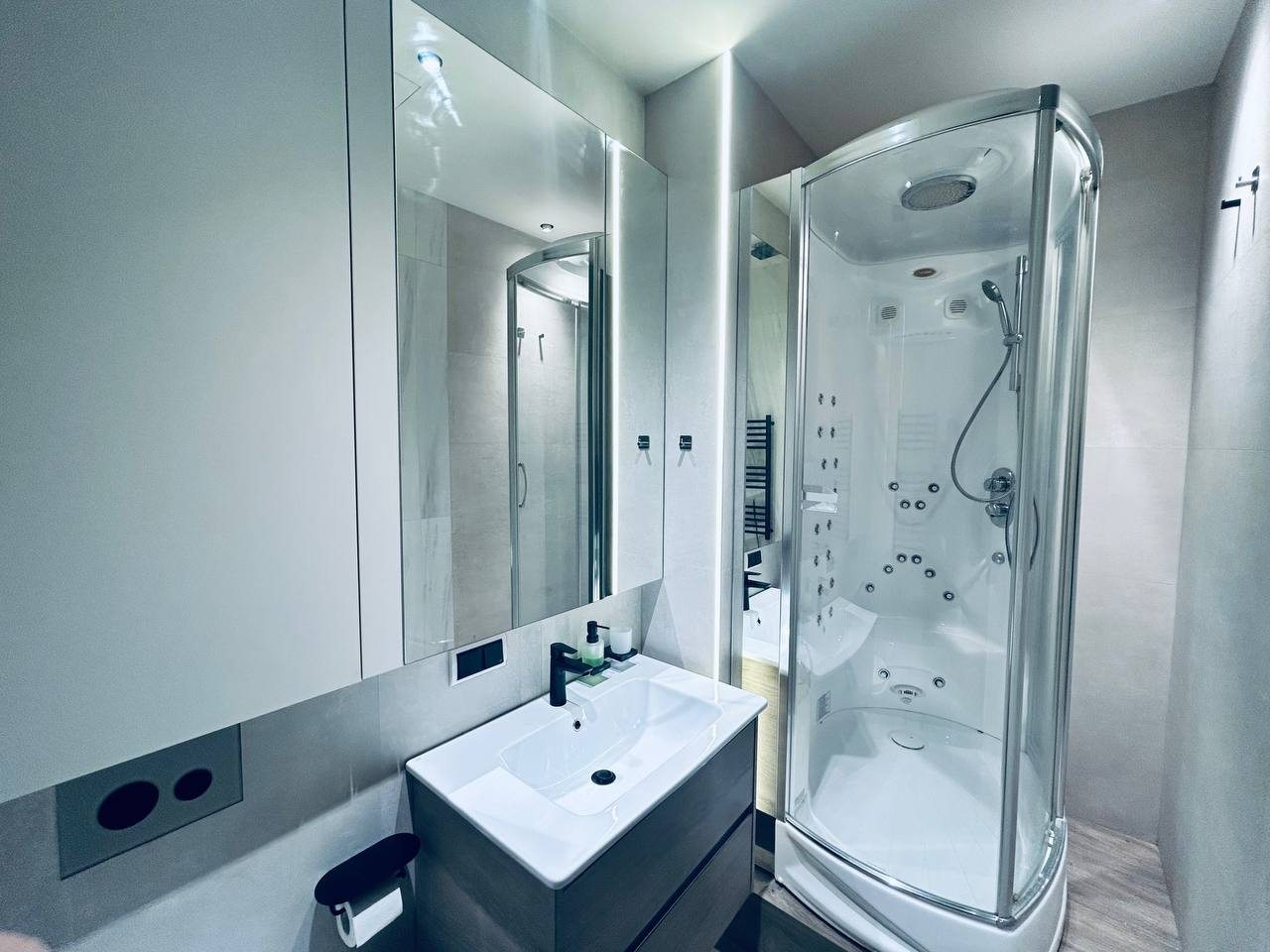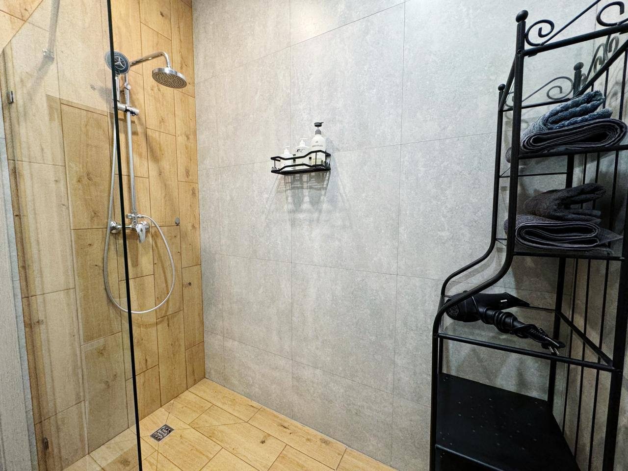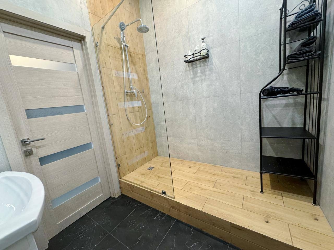 В апартаментах есть: ЖК-телевизор с игровой приставкой, комод, диван, кровать, отдельная ванная комната с душевой кабиной, туалетом и раковиной.