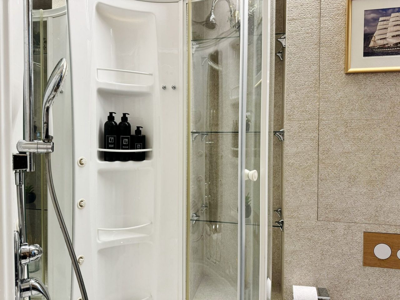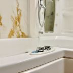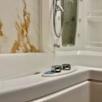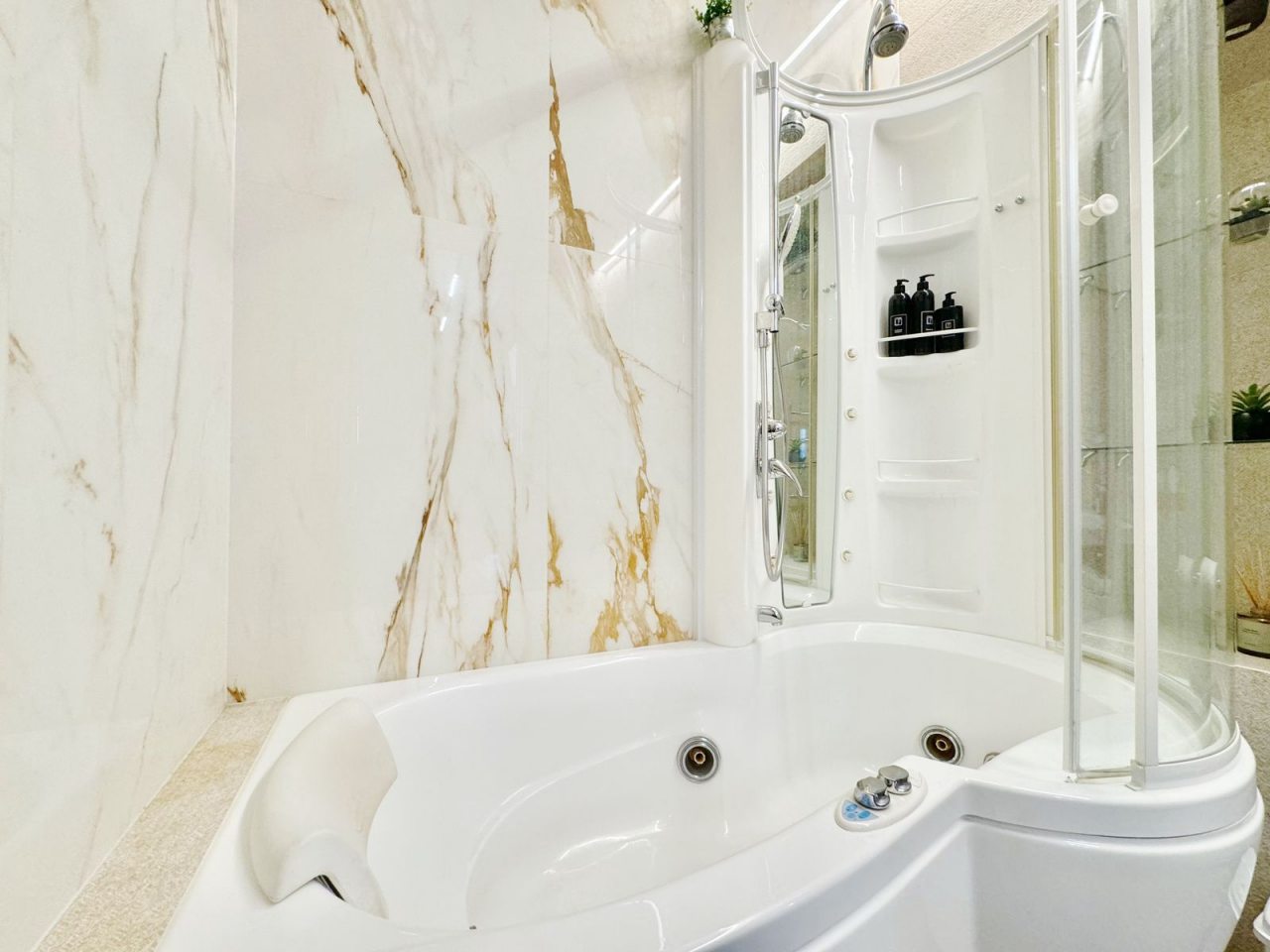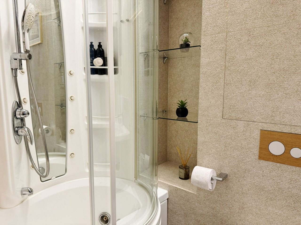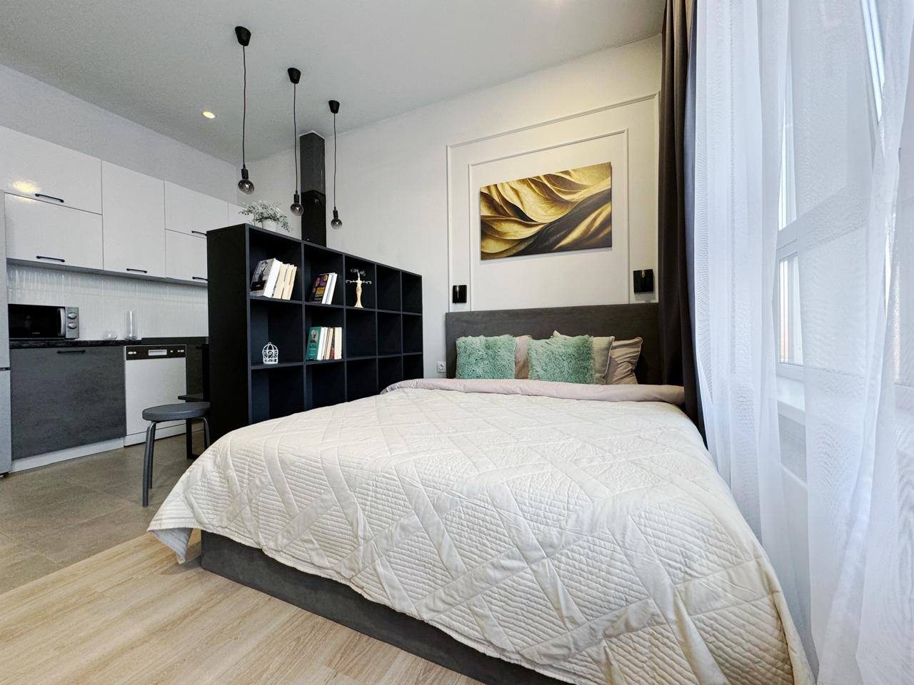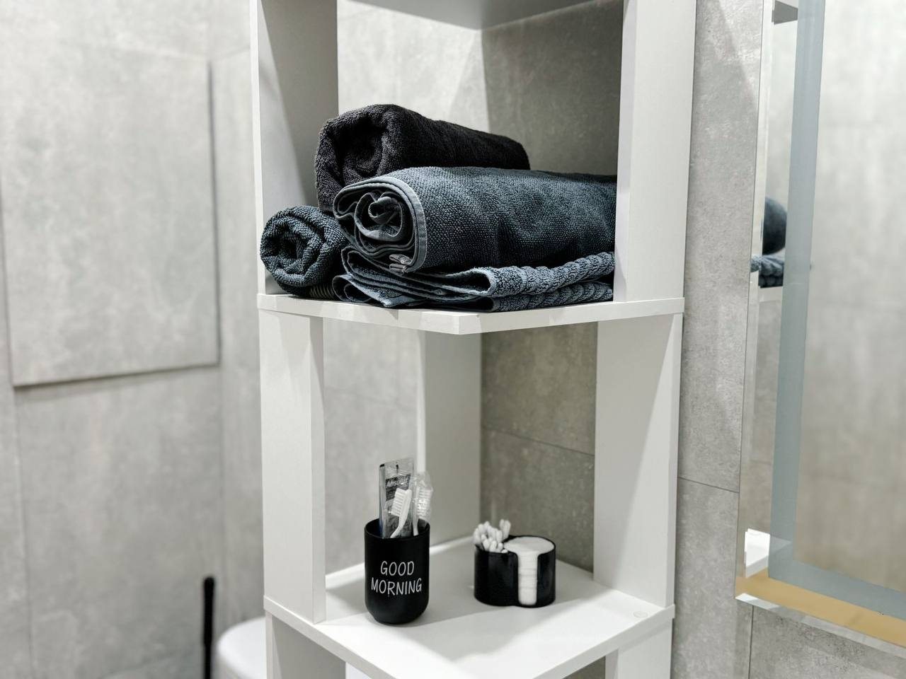 В апартаментах есть: ЖК-телевизор с игровой приставкой, комод, диван, кровать, отдельная ванная комната с душевой кабиной, туалетом и раковиной.