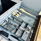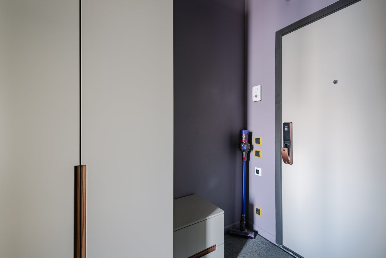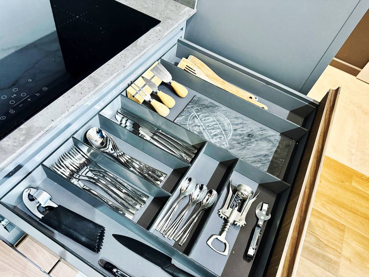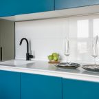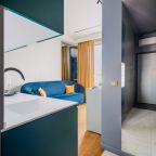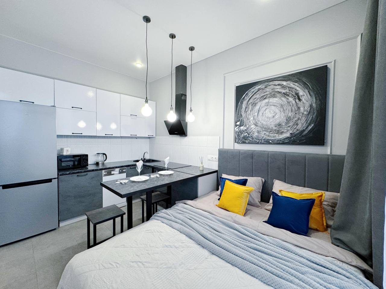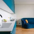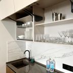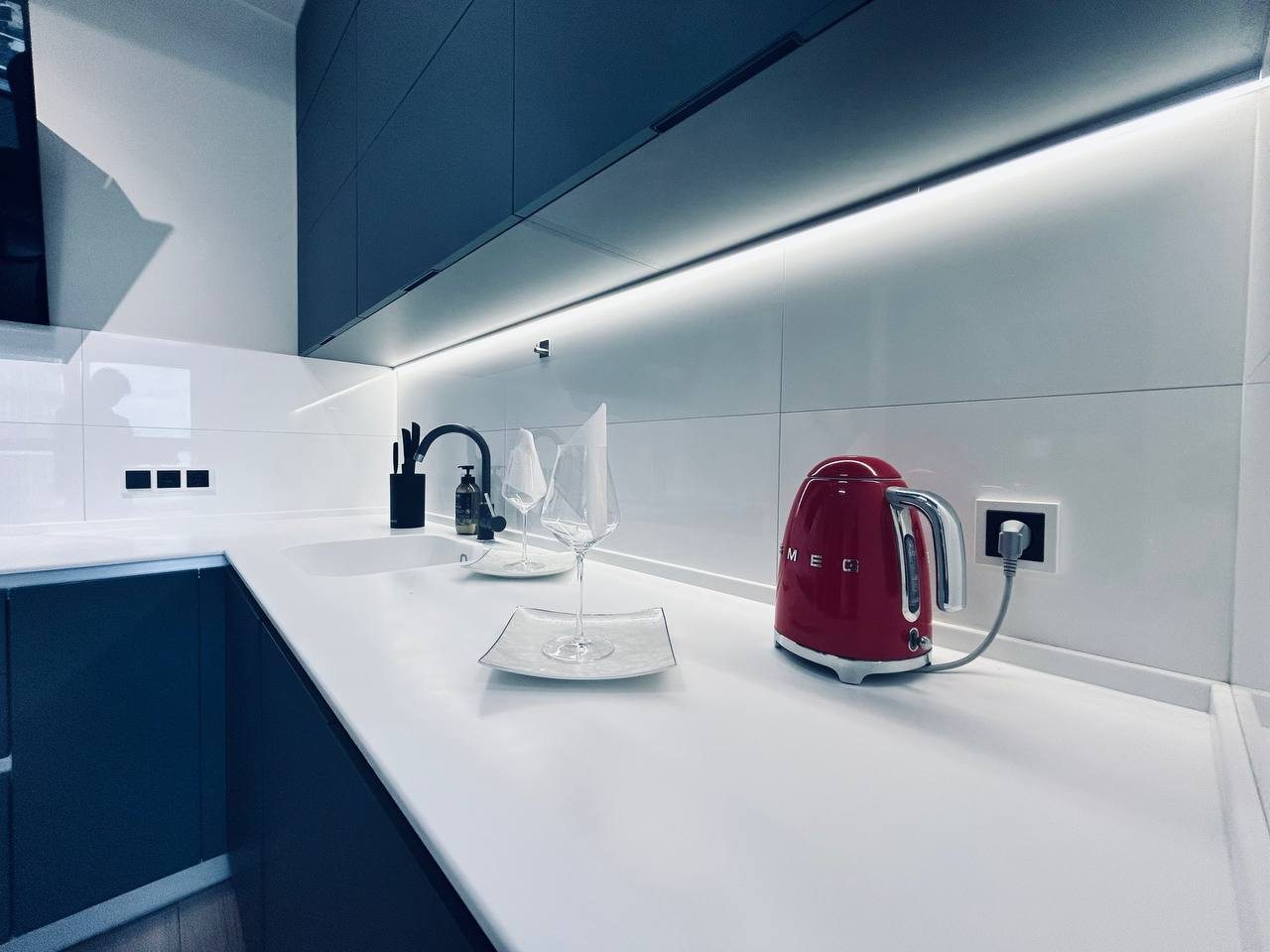 В небольшом кухонном уголке есть плита, электрочайник и холодильник. На территории ЖК работает пиццерия, ресторан вьетнамской кухни, кафе, кондитерская.