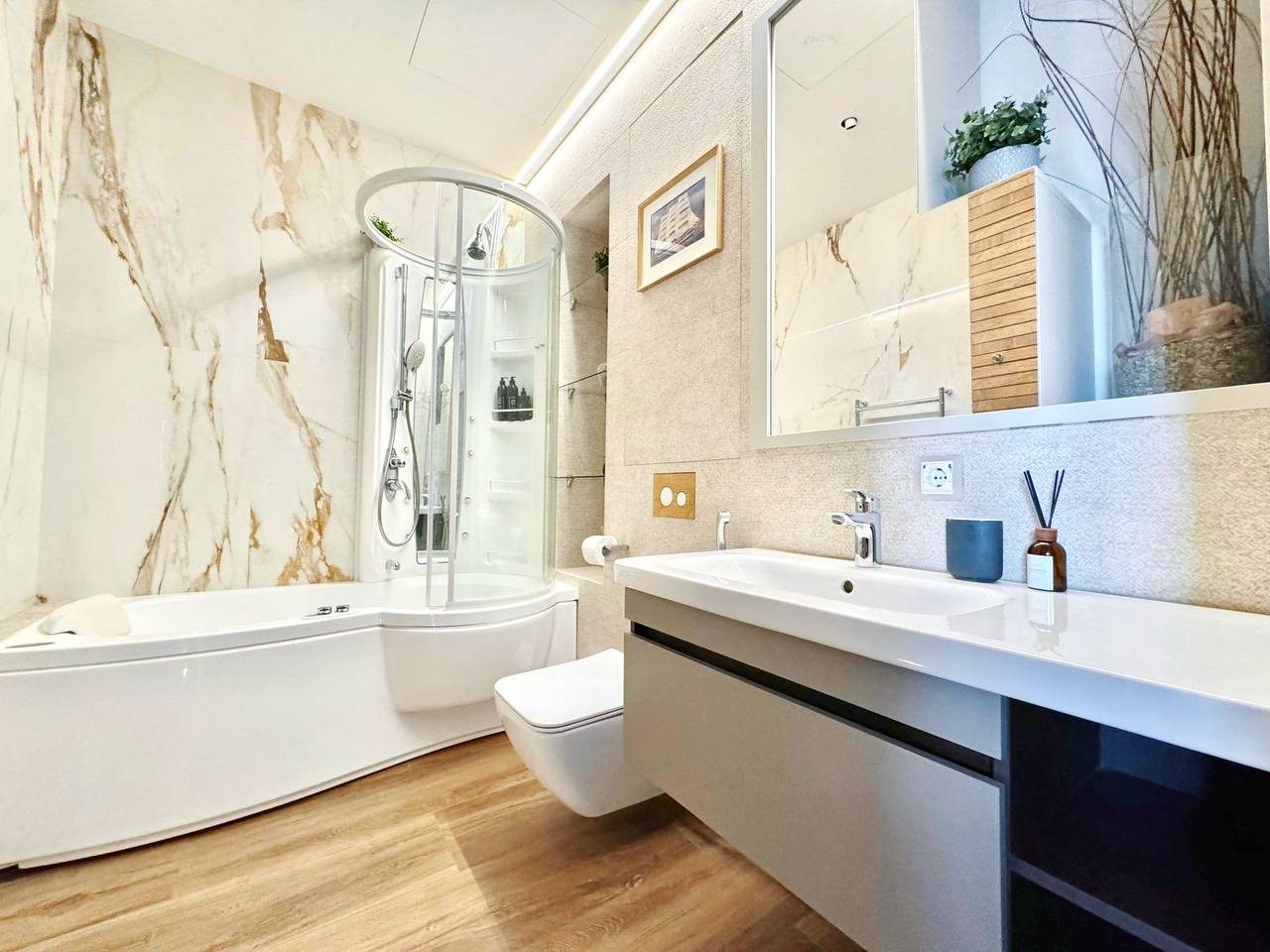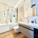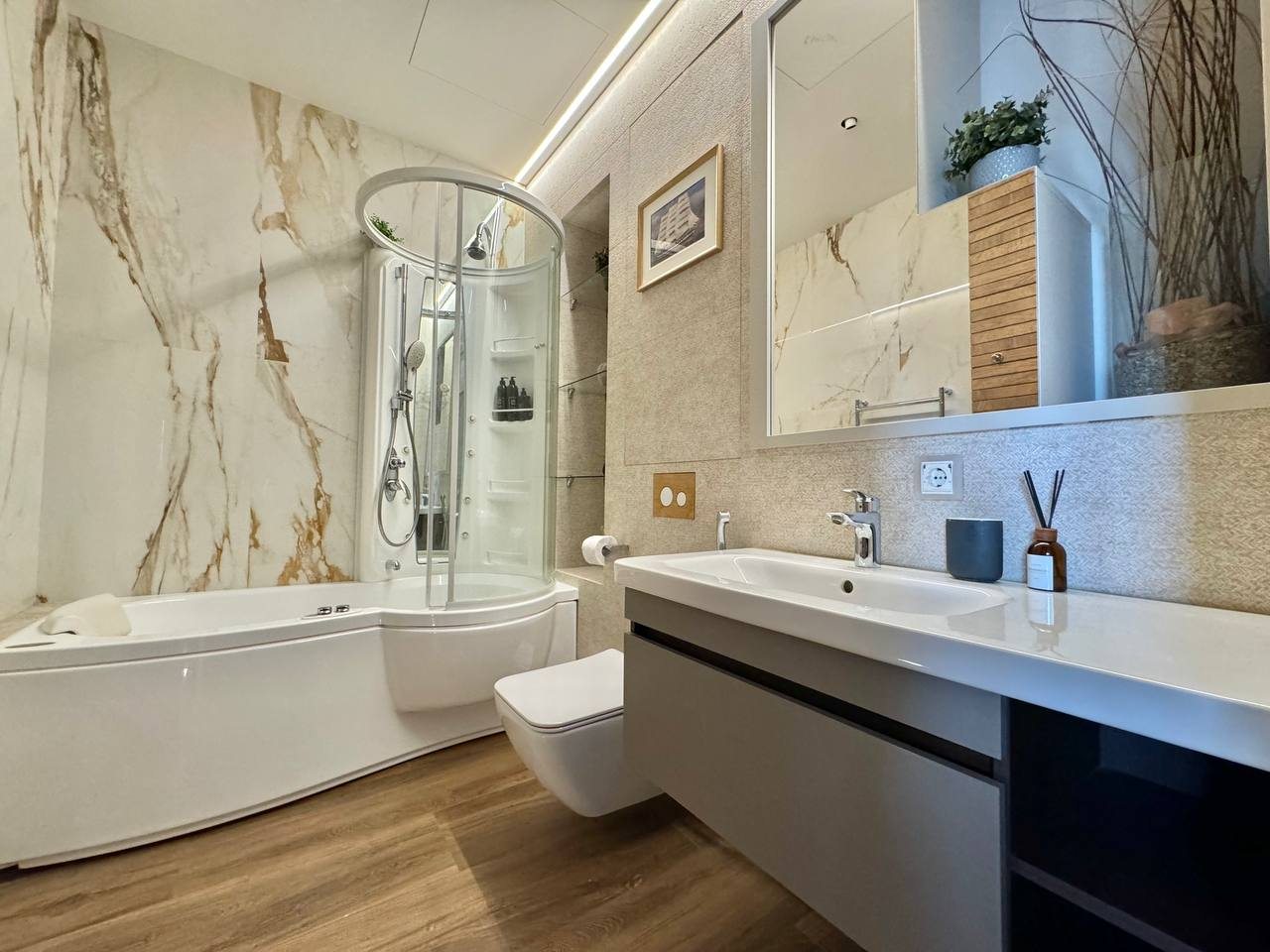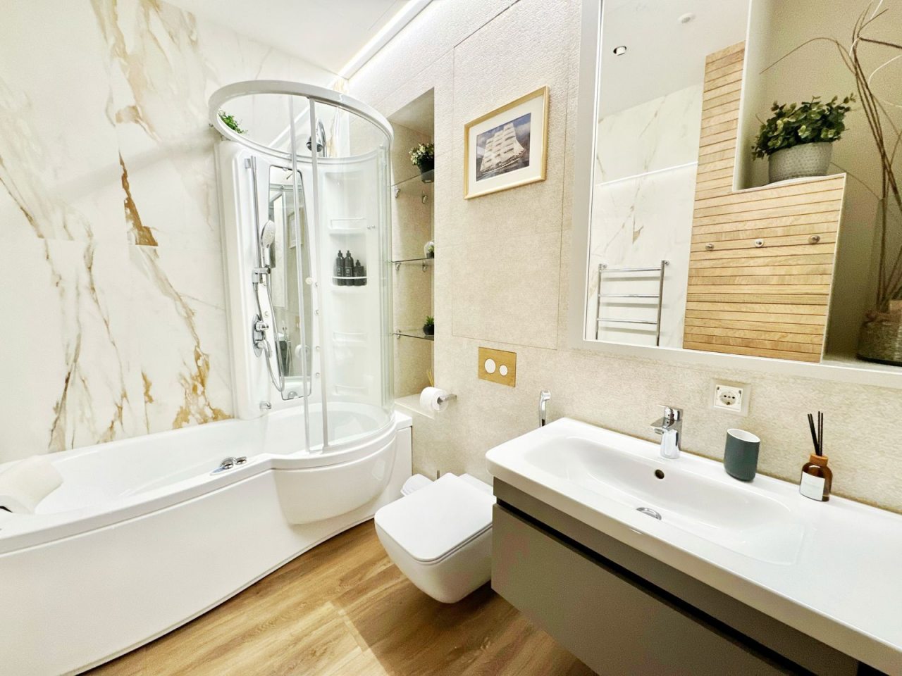 Отличный жилой комплекс и отличная квартира. Расположение для нас оказалось крайне удобным. Оснащение квартиры просто великолепное, так как вся мебель и техника была нужная. В ванной комнате был хороший набор сантехники. Будем рекомендовать знакомым данные апартаменты.