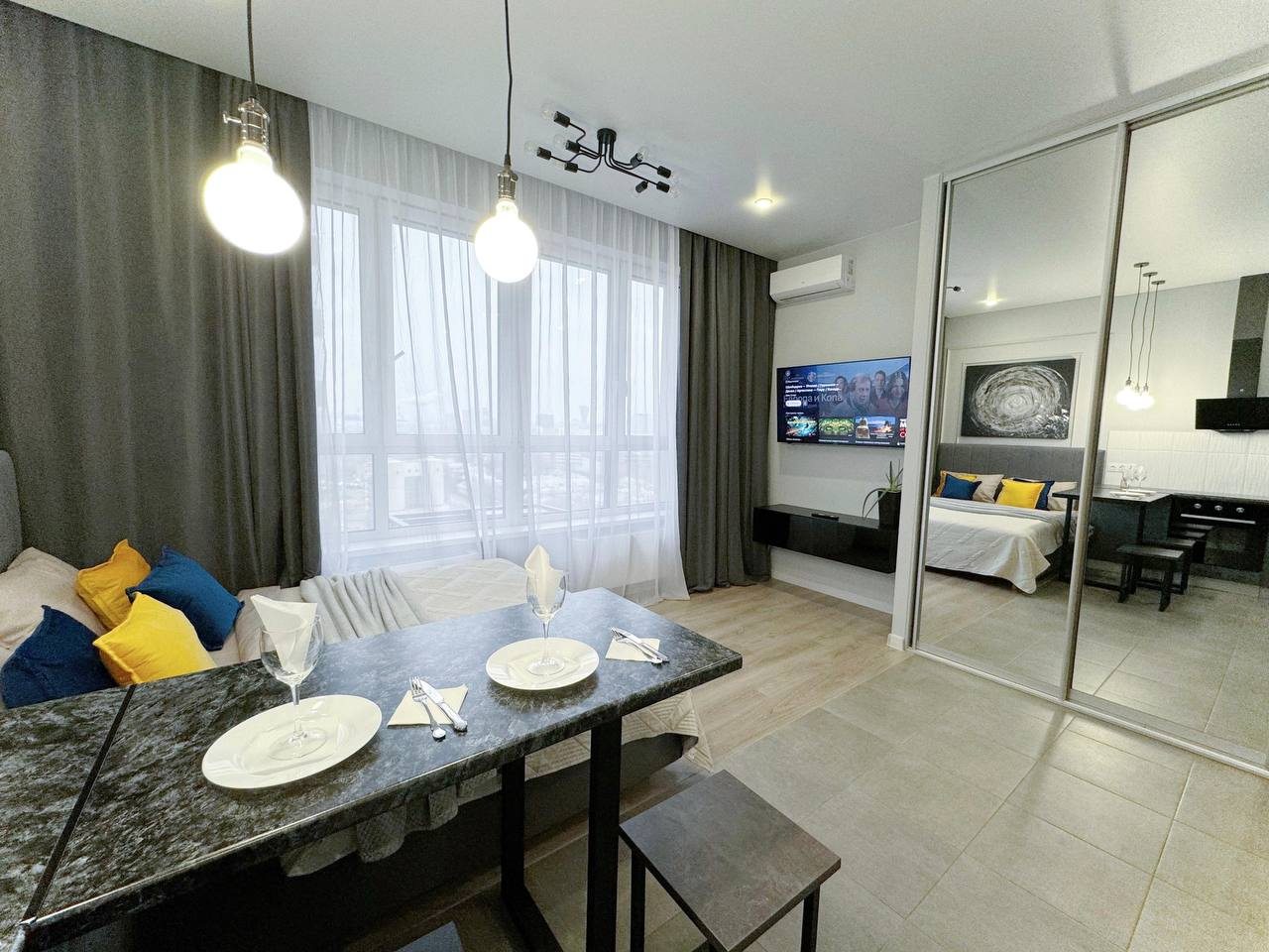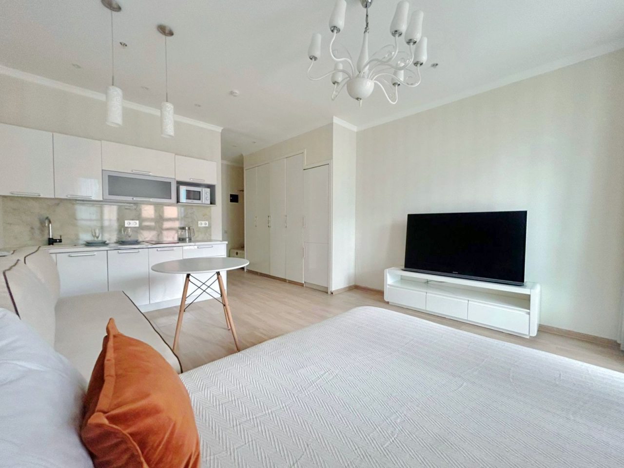 Приятная студия, недалеко от центра Москвы. Мы выбирали, глядя на ремонт и цену, этот вариант нам идеально подошел. Хоть это и студия, но она не маленькая, как это обычно бывает, она просторная и мебель стоит гармонично. Кухонная зона отделена от гостиной, есть вытяжка, что очень важно. В ванной чисто, за порядком следят. Рекомендуем!
