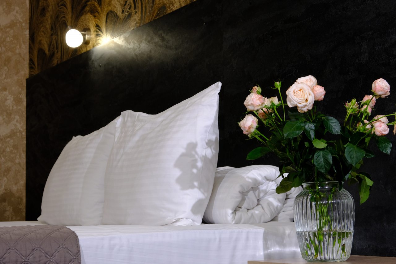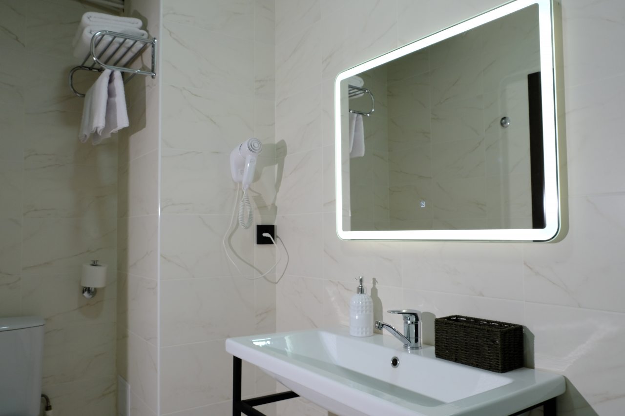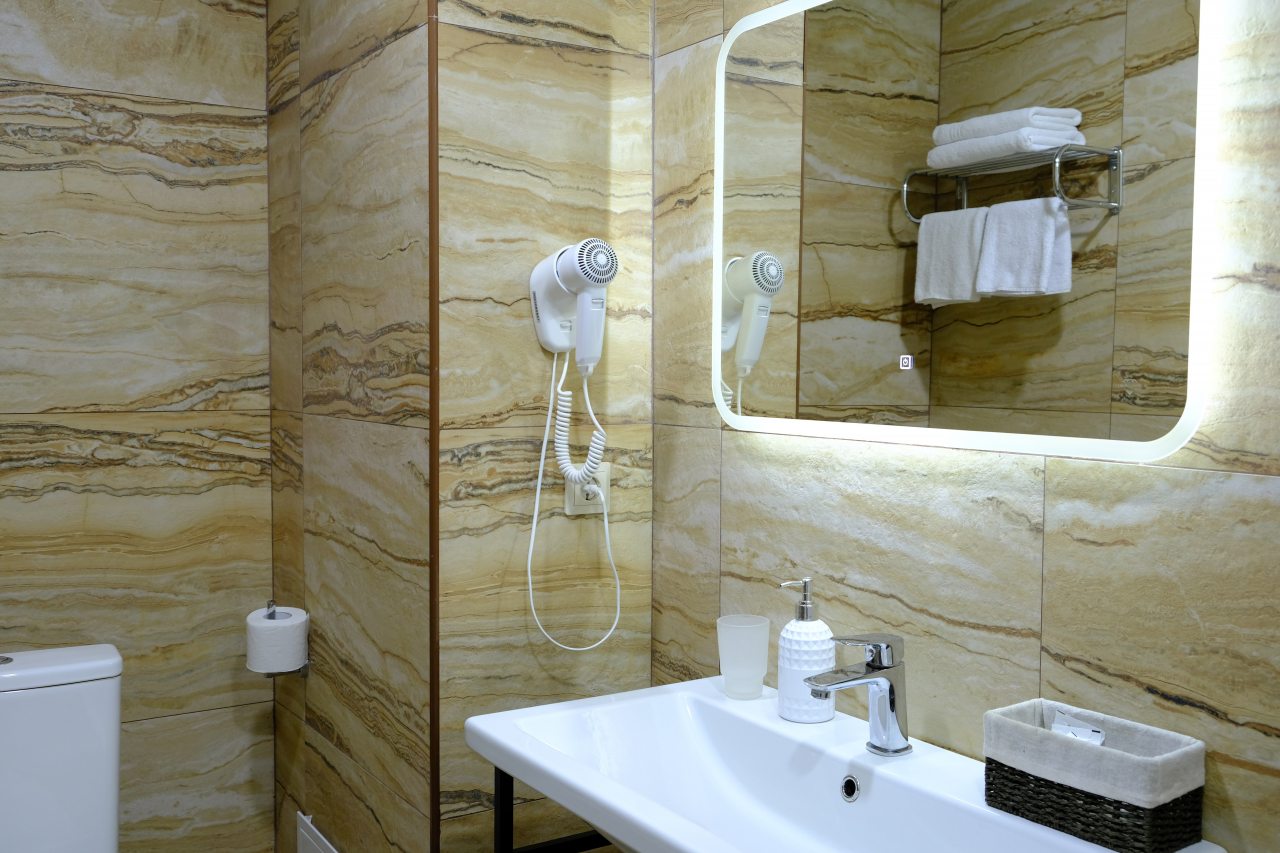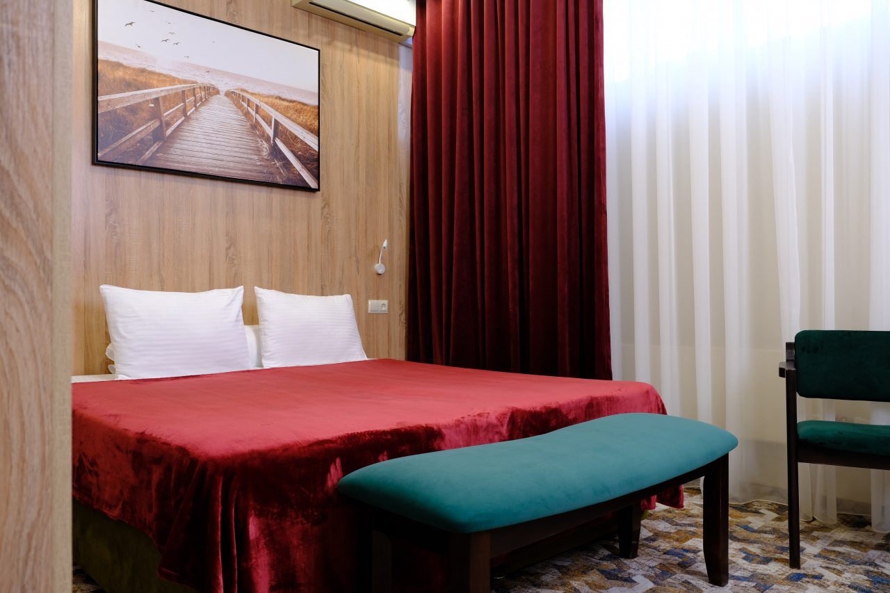 К размещению подготовлены номера разного уровня комфорта и вместимости. Во всех категориях имеются удобные спальные места, необходимая мебель, а также техника. Ванные комнаты укомплектованы новой сантехникой и наборами полотенец.