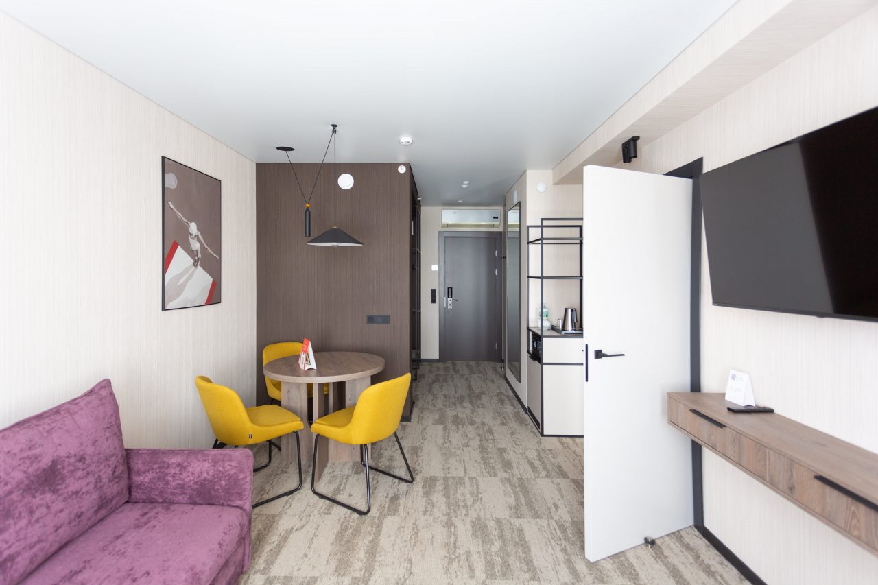 Для размещения подготовлены 980 вариантов разных комфорт-классов: от бюджетных до президентского сюита. Везде имеется современная техника и мебель: сплит-система, мини-бар, чайный набор, сейф, телефон, телевидение.