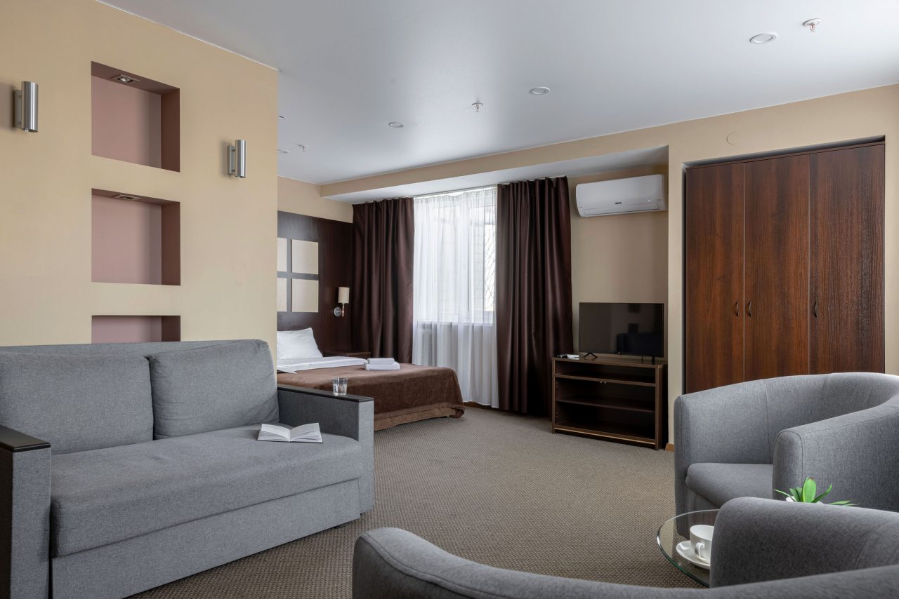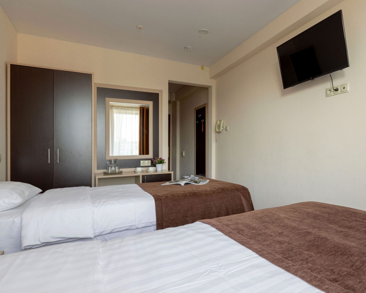 Отель представлен 147 номерами различных категорий. Каждая комната имеет все самое необходимое для комфортного проживания: санузел, телевизор, телефон, мини-холодильник, вентилятор, фен, электрический чайник. Во всех номерах установлены современные системы сигнализации и пожаротушения.