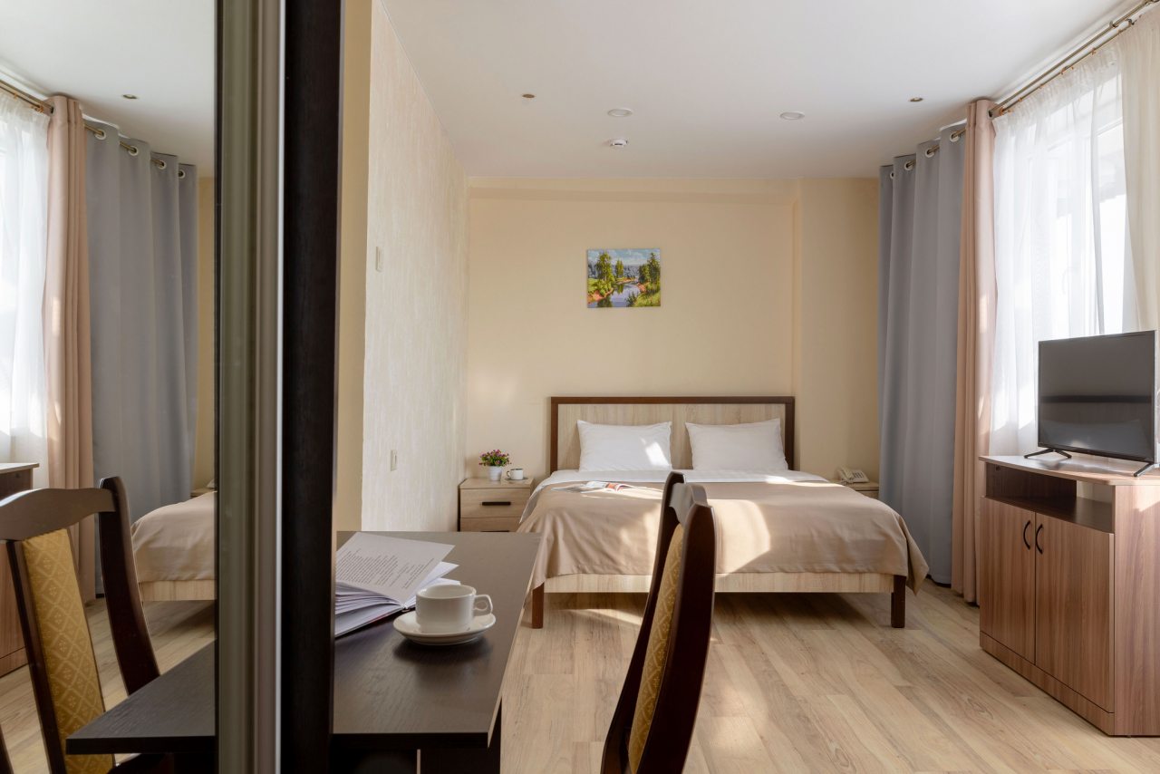 Для 2 звёзд очень достойно. В номере всё есть для комфортного проживания. Был даже электрический чайник, вечерами пили чай со вкусняшками. В целом, уютный номер с красивым видом из окна. Завтраки вкусные, но в стоимость не включены. Месторасположение отличное, тихо и рядом станция метро.