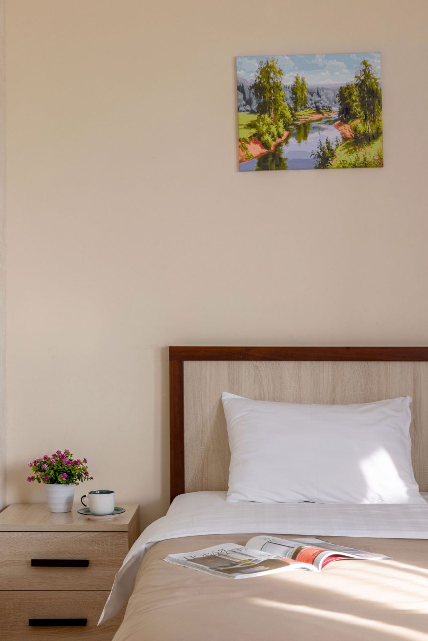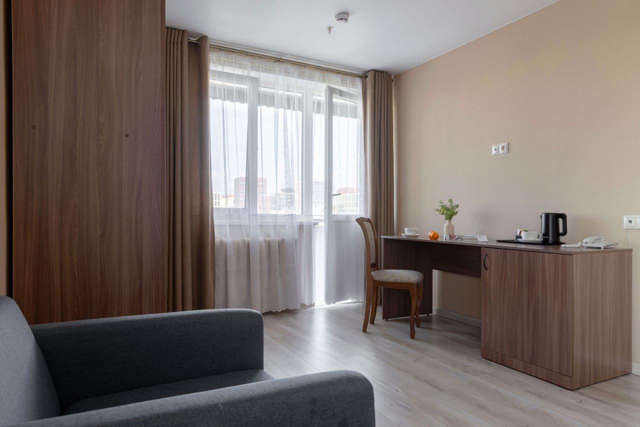 Хорошая гостиница, проживание в номере резервировала предварительно. Номер оказался с хорошим видом, рядом с гостиницей есть станция метро и продуктовые магазины, мне такое расположение было на руку.