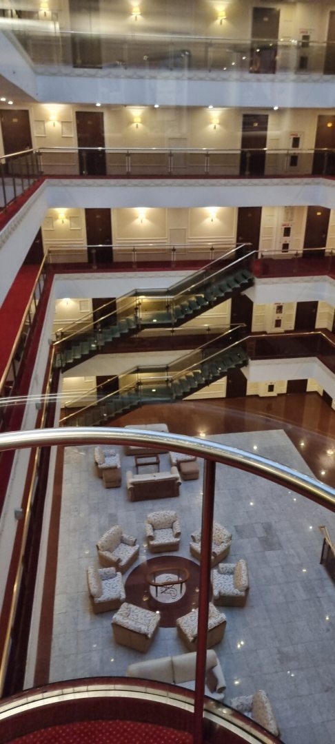 Лифт в отеле - зрелищный, видно весь атриум, состоящий из верхнего зала со стеклянной крышей и нижнего - с роскошной люстрой! Между этажами есть стеклянные лестницы и красивые переходы. Отдыхать в этом отеле - просто праздник! Рекомендую!