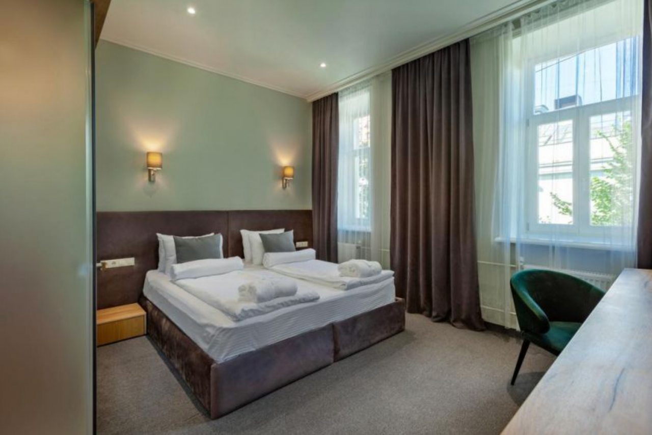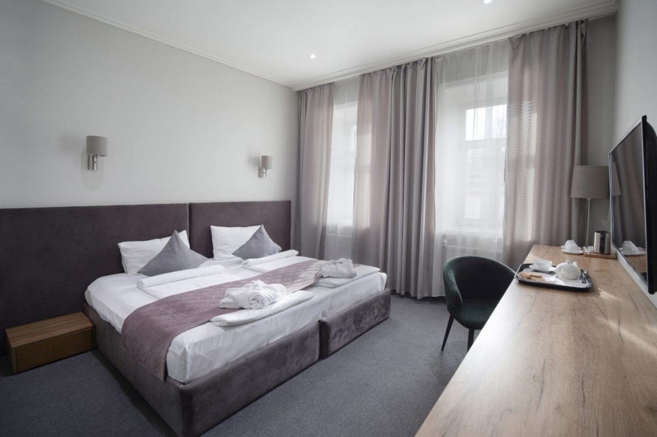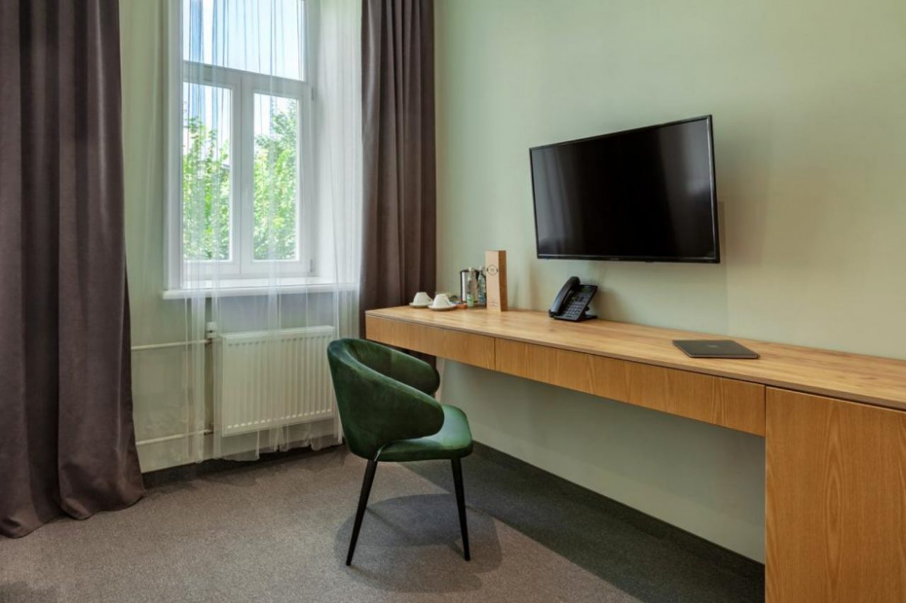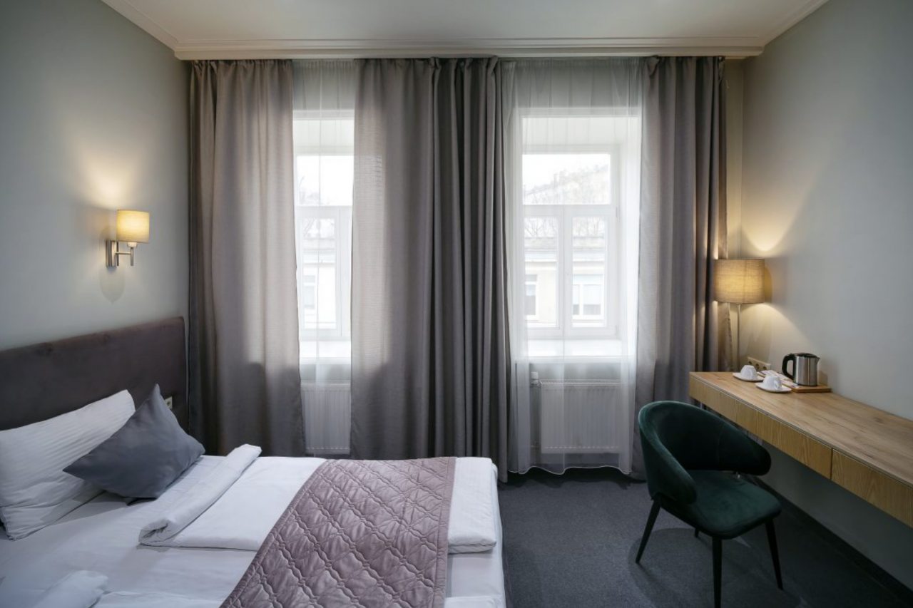 С дочкой были в столице. Решили взять отель поближе к метро. Этот нам подошёл идеально. Номера понравились на сайте, а реальности оказались такими же симпатичными. Точнее, наш номер, так как мы один на двоих брали. Завтраки есть, нам было вкусно. Ресторан не посещали. В номере кровать удобная, свой санузел, телевизор.
