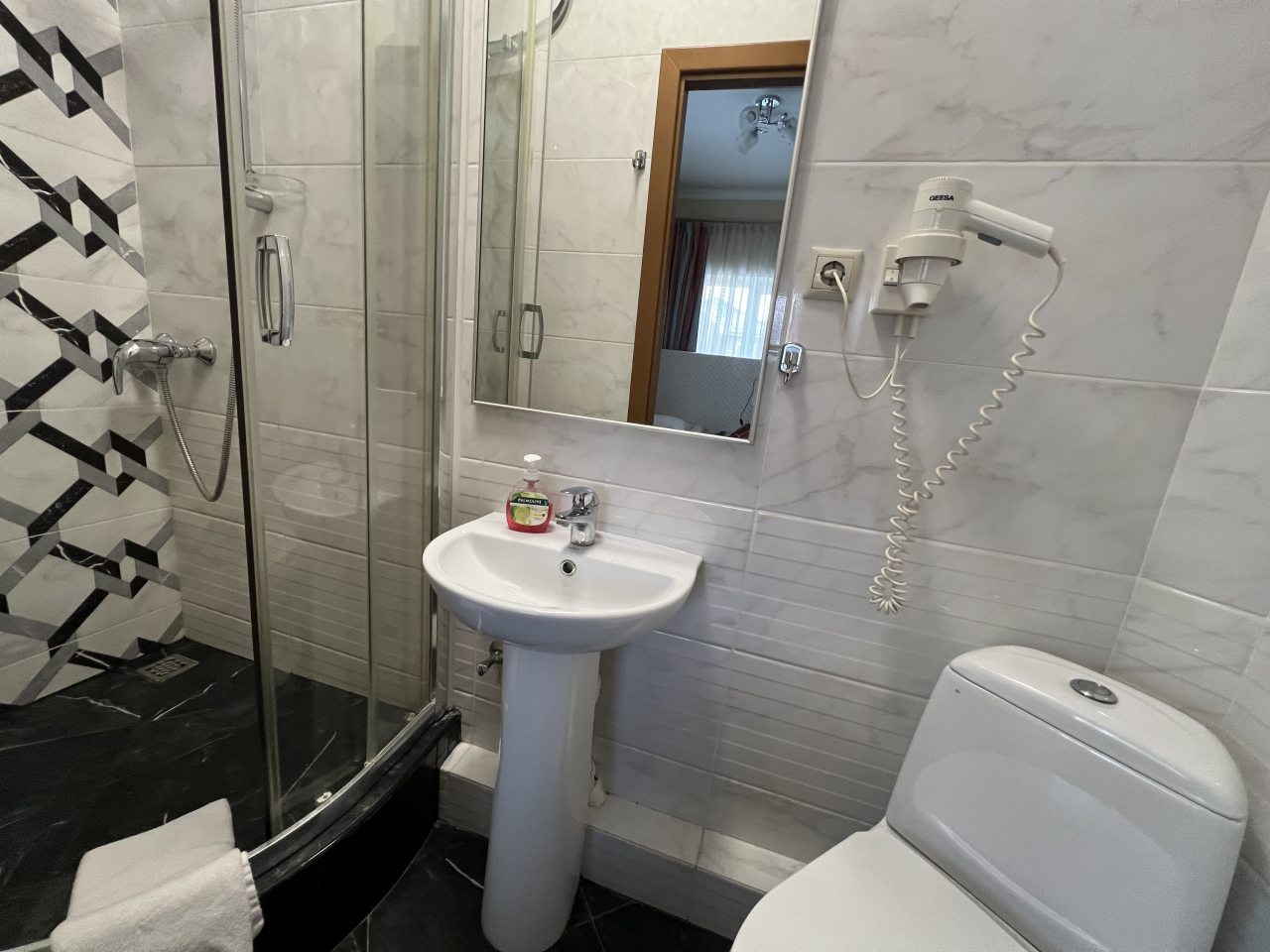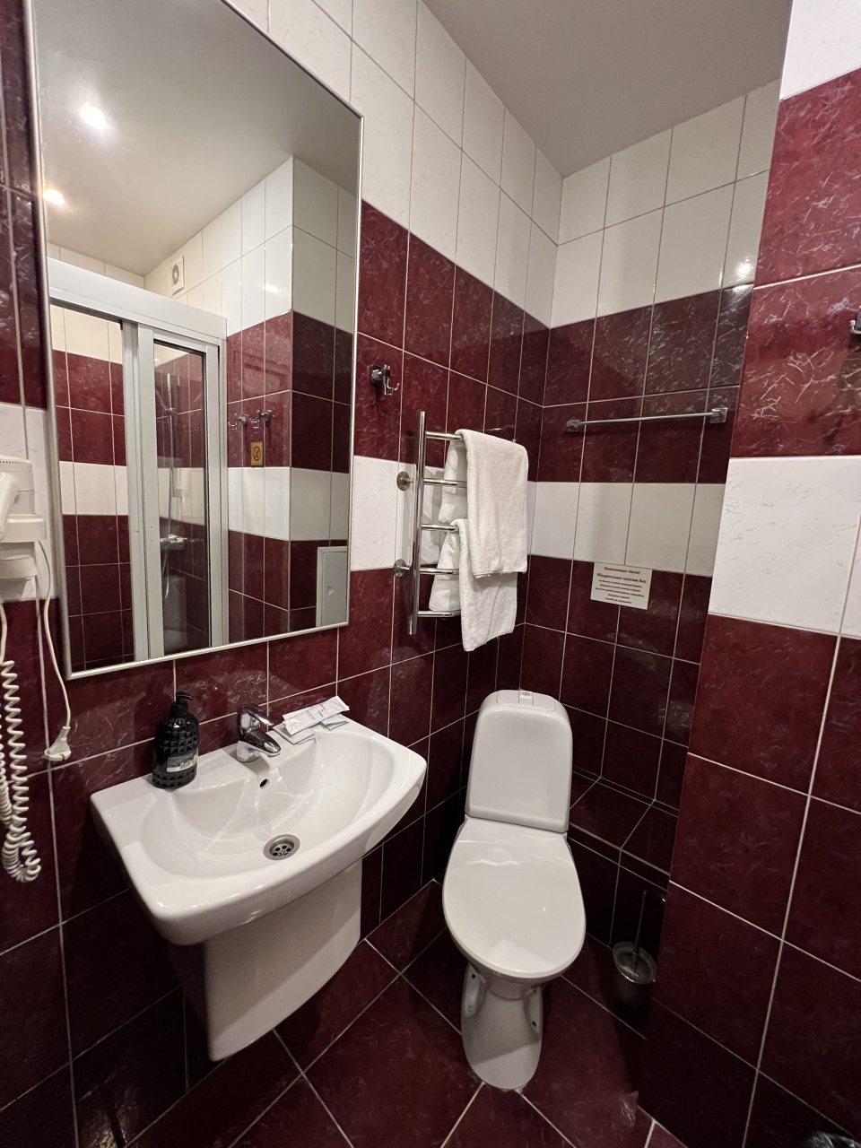 В номере нет кружек и чайника, подушки очень маленькие,номера подуставшие,но матрас удобный ! На одну ночь вполне подойдет, кафе находится в этом же здании-но мы не воспользовались! Заявленый трансфер-не брали,на мой взгляд он крайне неудобен-довозят до остановки, а дальше сами пешком с чемоданами(аргументируя это тем ,что большой микроавтобус на территорию аэропорта не пускают?) мы брали такси!