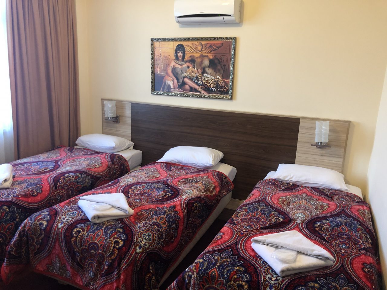 К размещению гостей представлены комфортные номера, оформленные в красных, черных и светлых тонах. Все они оборудованы кондиционером, мини-баром, холодильником, телевизором и телефоном. В собственной ванной комнате обязательно есть душевая кабина, комплект полотенец, фен, тапочки, халат и средства личной гигиены.