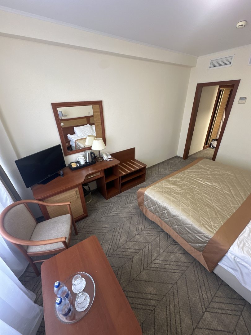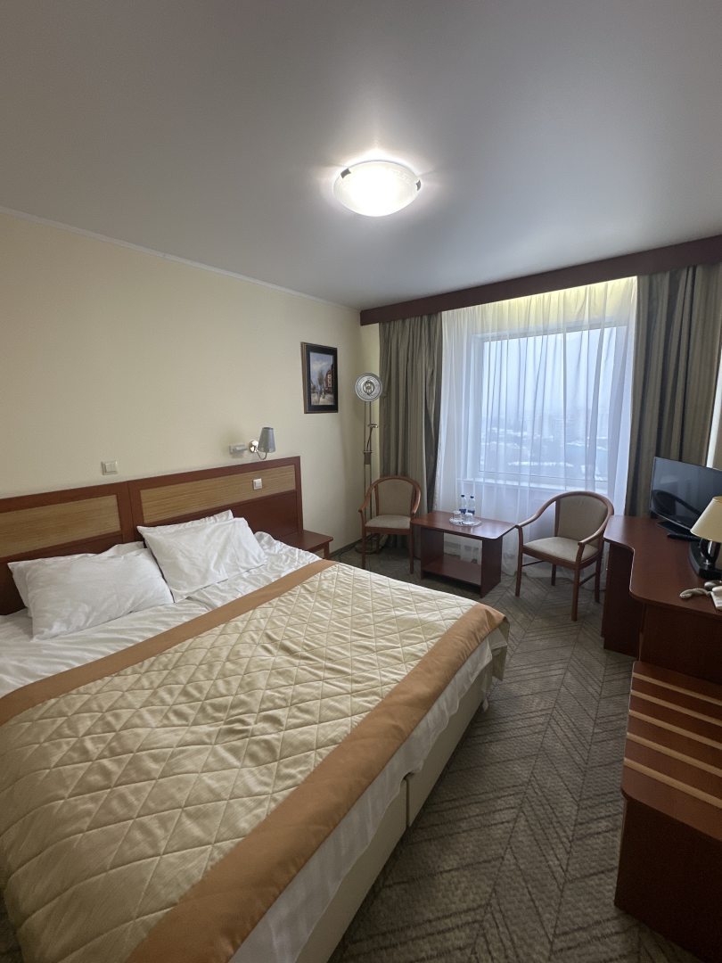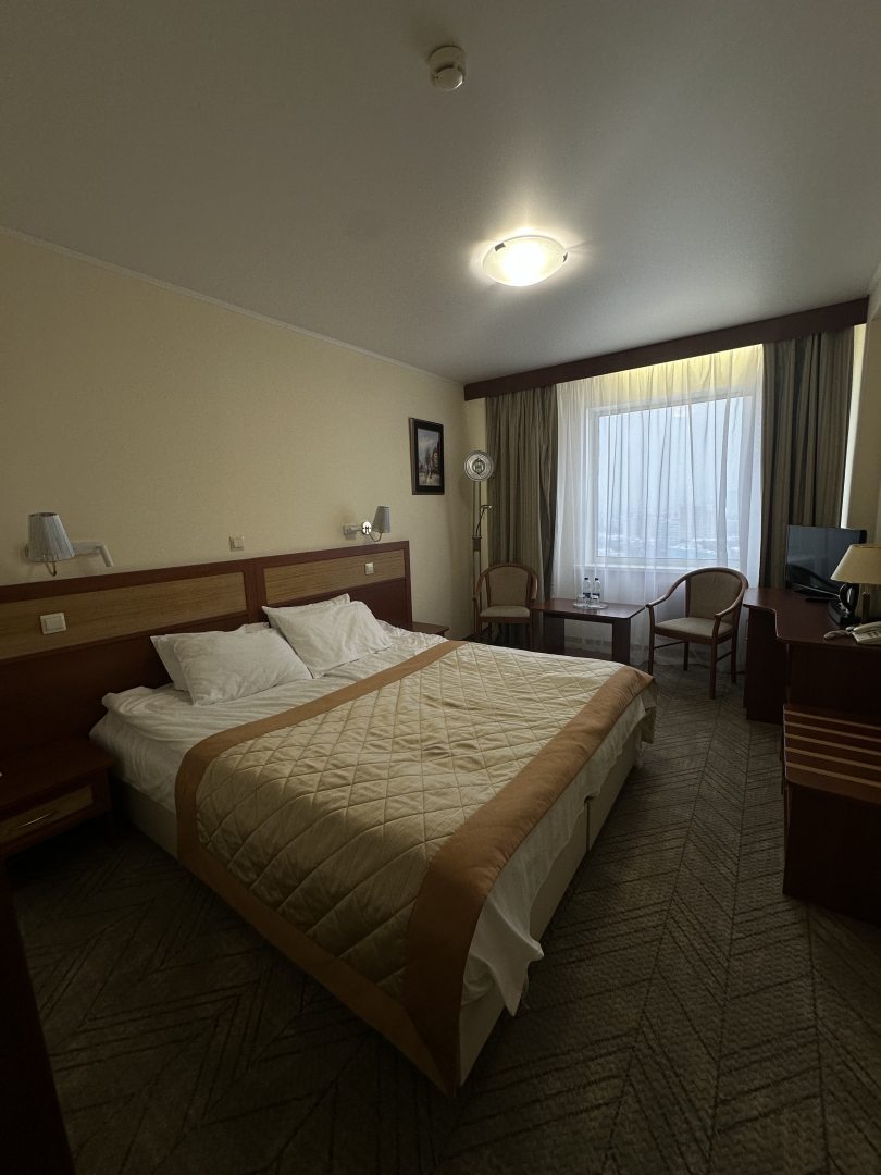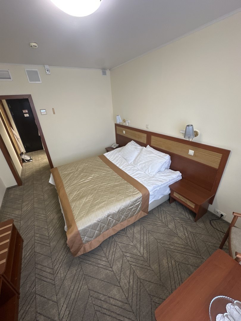 Хорошее местоположение, близость метро. Отель соответствет своей звёздности (три звезды). Номер просторный, соответствует заявленному. Достаточного размера ванная комната, укомплектованная всем необходимым (мыло, шампунь, гель для душа, зубная счётка с пастой) Чистота. Хорошее постельное бельё (чистое и не очень старое). Мебель достаточно возрастная, со следами износа, но в нормальном рабочем состоянии (ничего не скрепит и не отваливается). Заявлена по предбронироаанию кровать двухспальная (по факту две односпальные кровати сдвинутые вместе, соответственно два отдельных матраса, в результате чего имеется щель между двумя спальными местами). Так как в номере проживал один, мне неудобств не доставило, но для пар, может стать небольшим сюрпризом). Проживанием остался доволен.