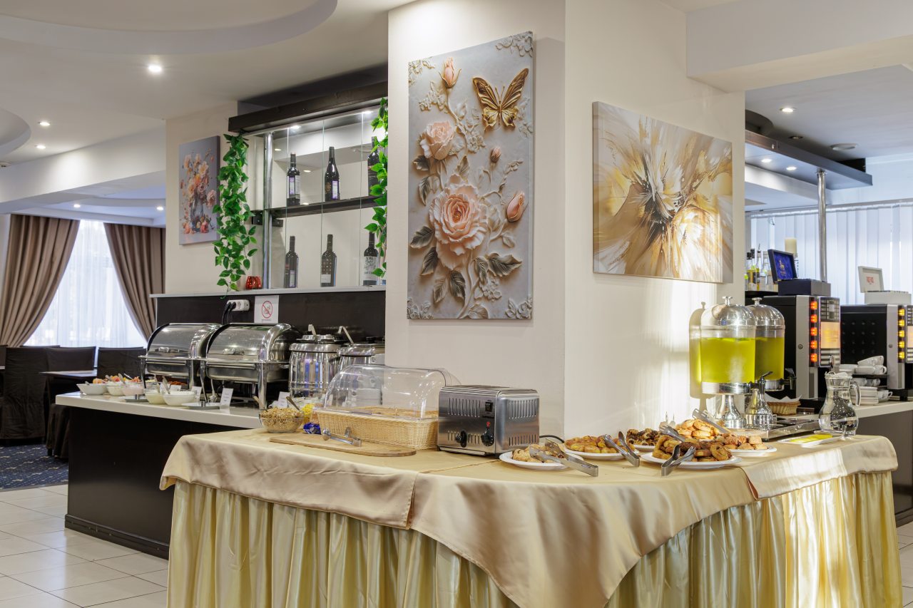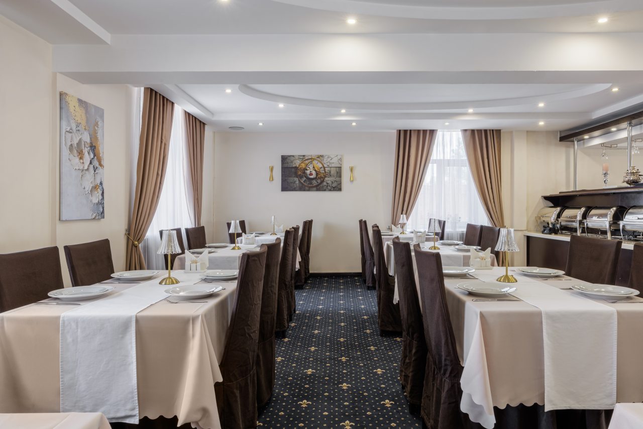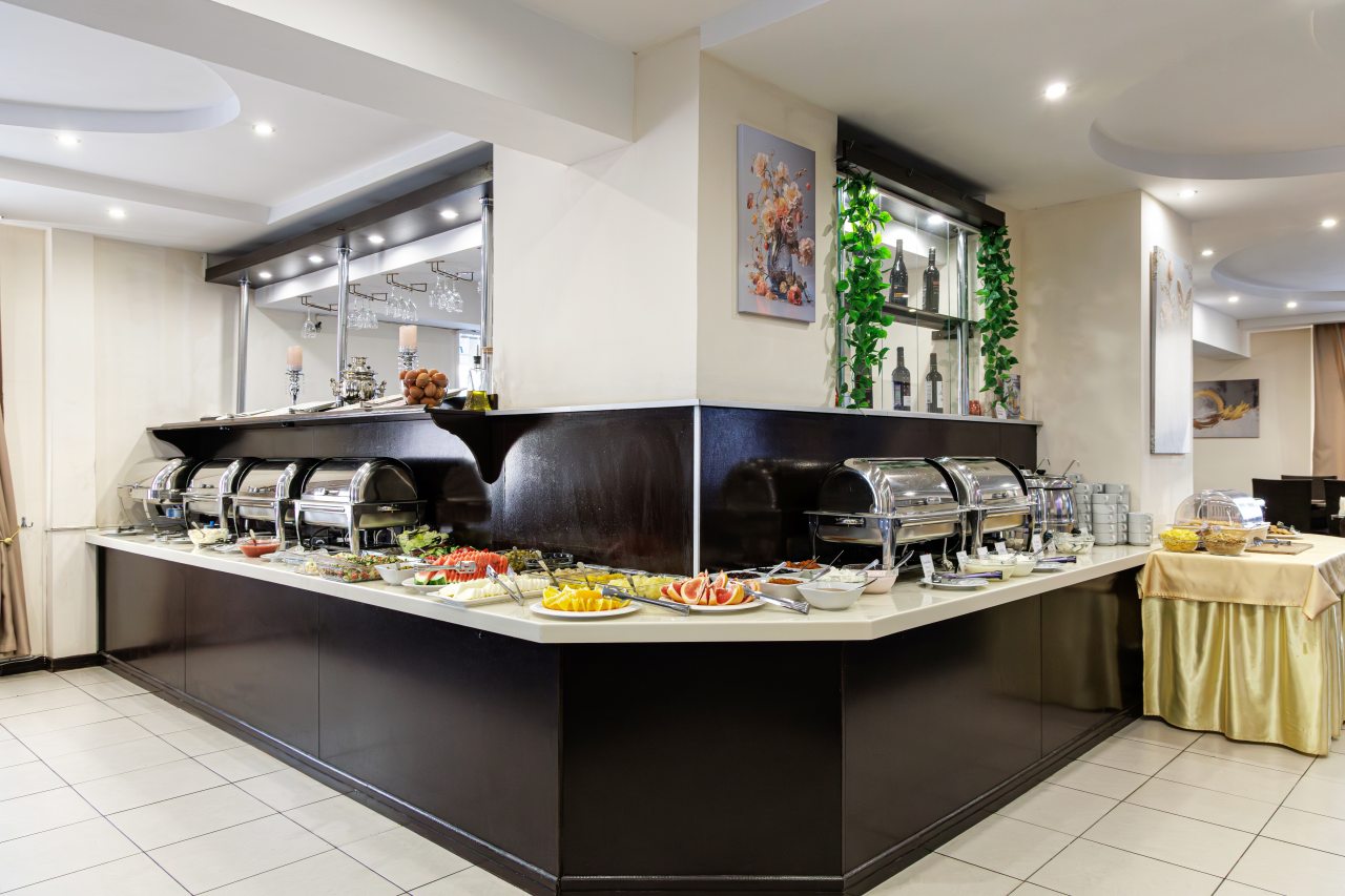 Ежедневно с 07:00 до 10:00 по будням и с 07:00 до 11:00 по выходным гостям отеля предлагается завтрак «Шведский стол». За дополнительную плату можно заказать комплексные обеды и ужины по 1400 рублей с человека за один прием пищи.