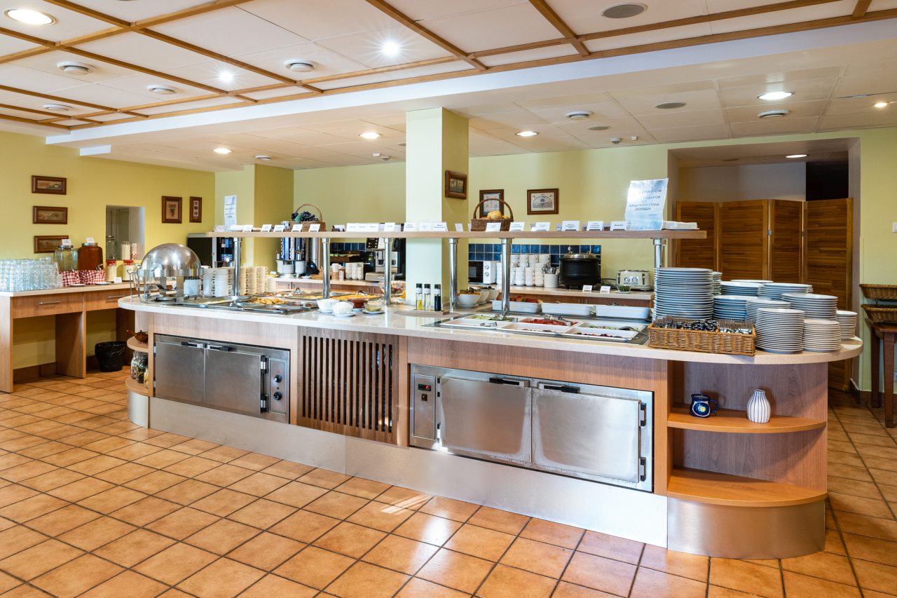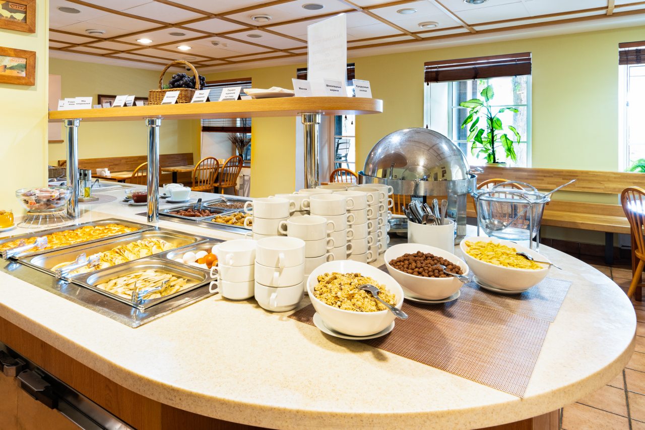 В отеле работает ресторан, предлагающий блюда русской и европейской кухни и завтрак по типу «шведский стол».