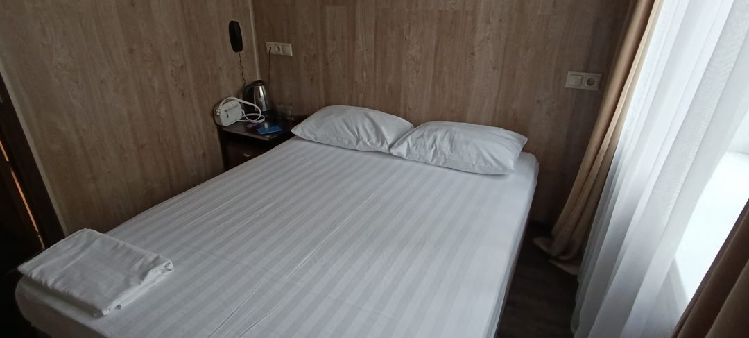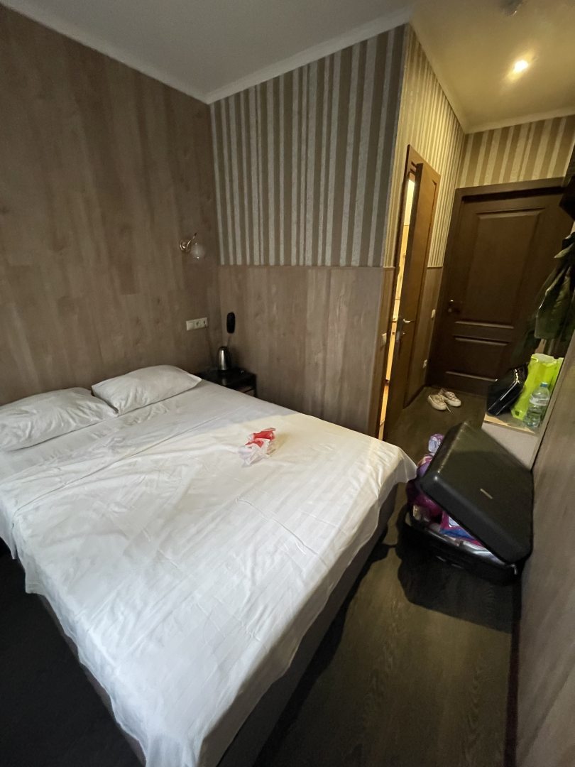 Останавливалась на 2 дня, перед вылетом из Внуково, поэтому приоритетным было это расположение. Номер небольшой, но для проживания все необходимое было: чайник, телевизор, своя душевая в номере. Белье белоснежное, кровать удобная. Рядом достаточно кафе и магазинов, чтоб не остаться голодным. Очень помог молодой человек на ресепшене, у меня был очень тяжёлый чемодан, он мне помог и при заселении, и при выезде.