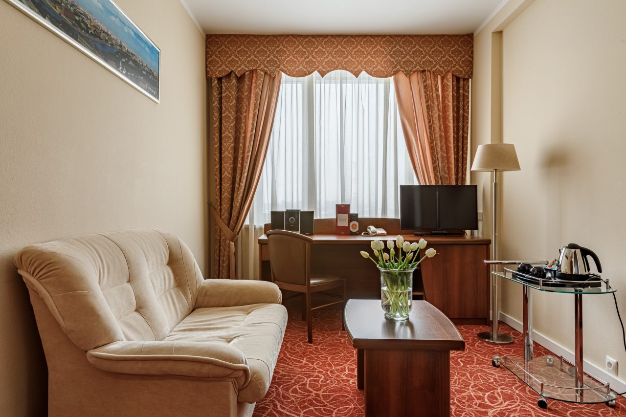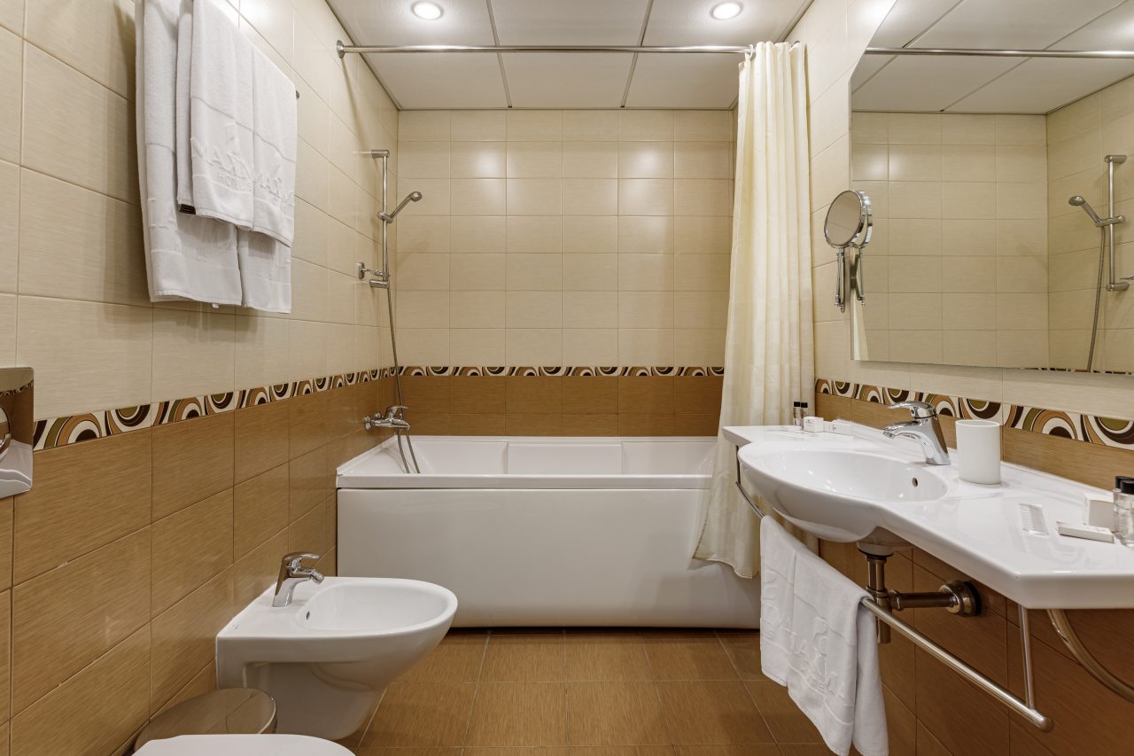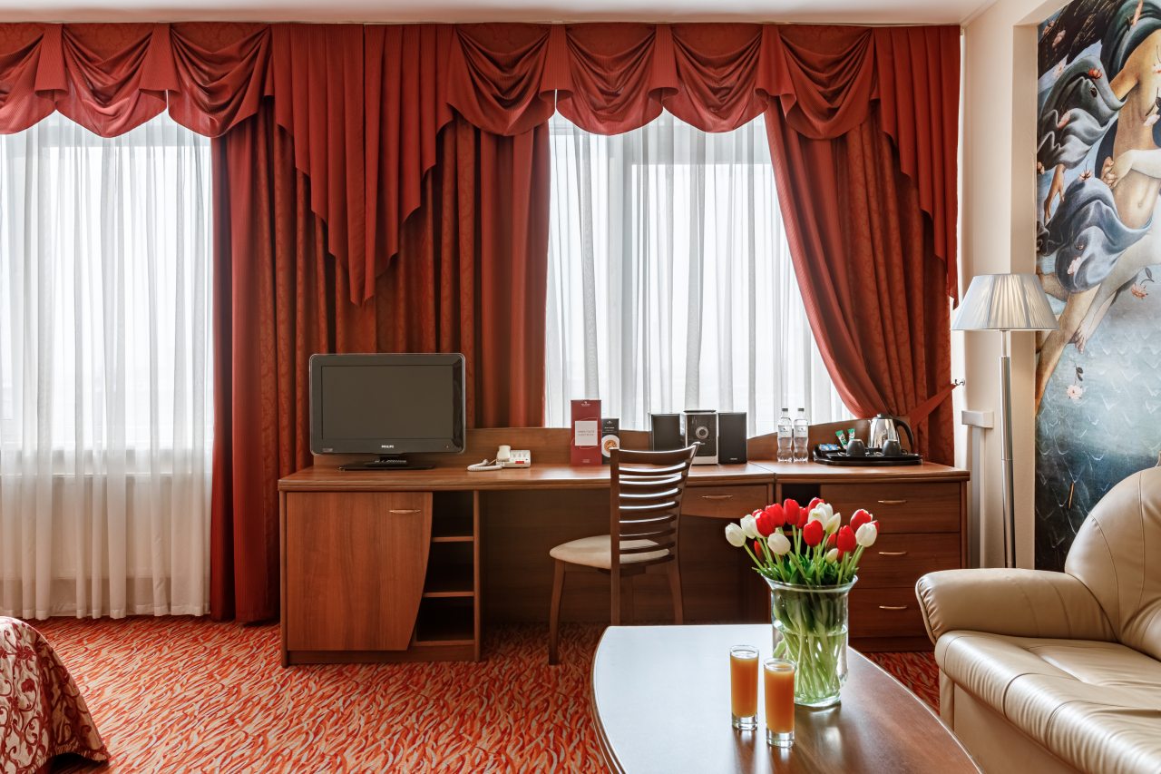 Номерной фонд представлен комфортабельными номерами различной категории, каждый из 123 номеров оборудован системой кондиционирования, электрическими чайниками и всеми необходимыми принадлежностями для чаепития. Помимо этого в распоряжении Гостей находятся мини-холодильник, телефон, телевизор со спутниковым вещанием и ванная комната.