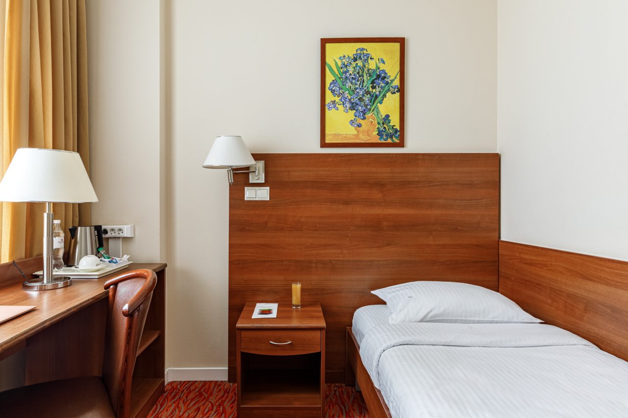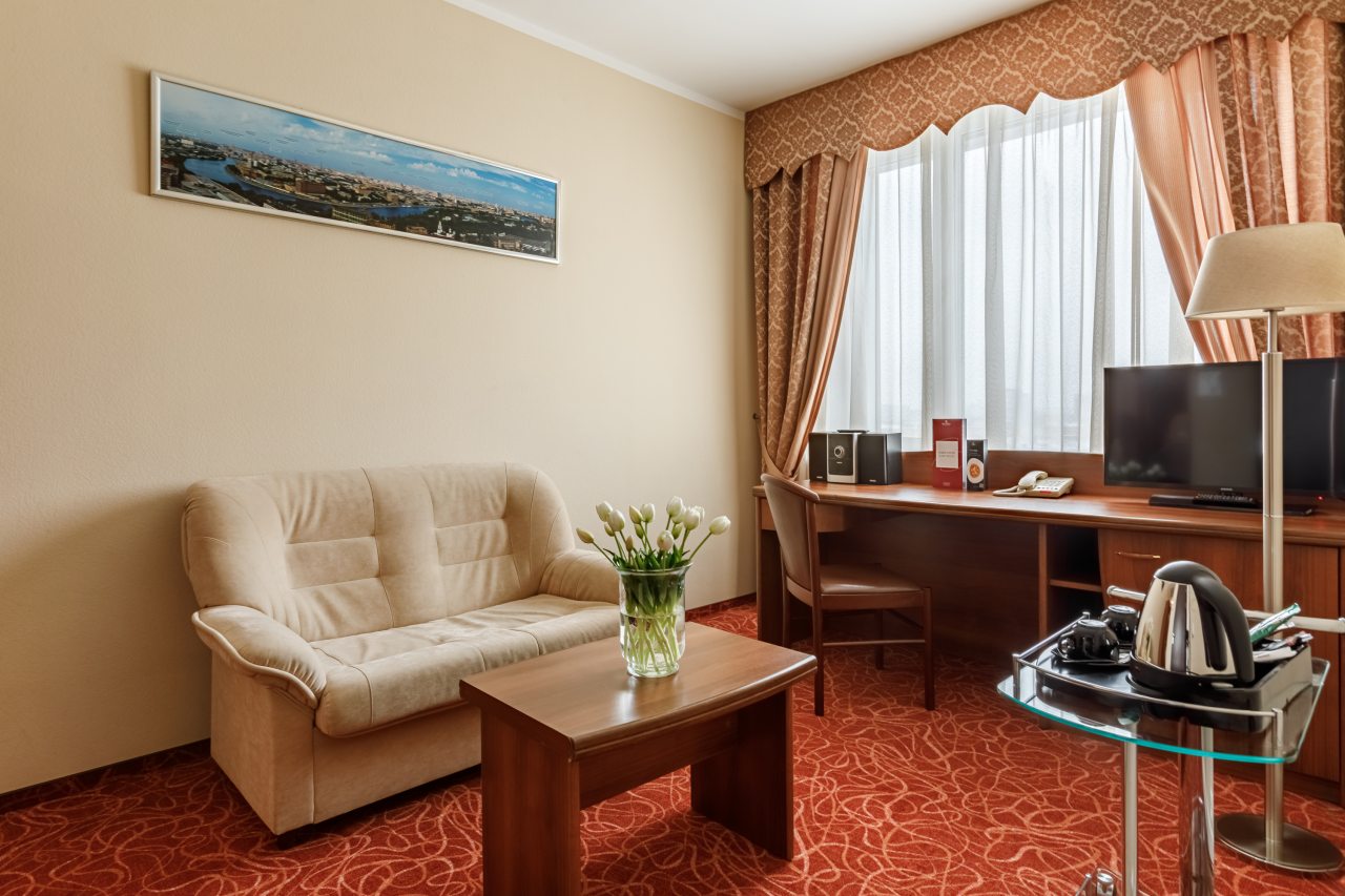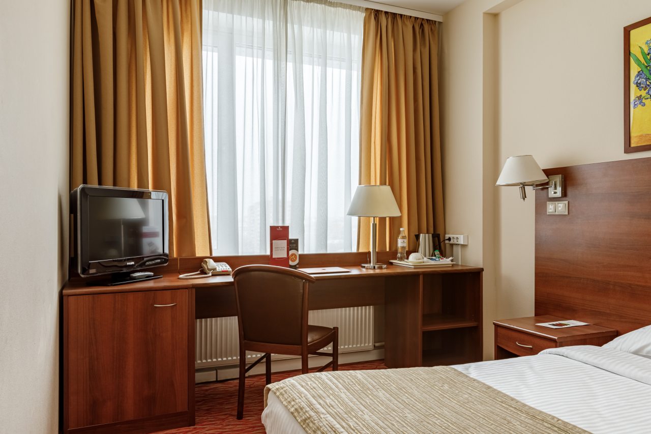 Номерной фонд представлен комфортабельными номерами различной категории, каждый из 123 номеров оборудован системой кондиционирования, электрическими чайниками и всеми необходимыми принадлежностями для чаепития. Помимо этого в распоряжении Гостей находятся мини-холодильник, телефон, телевизор со спутниковым вещанием и ванная комната.