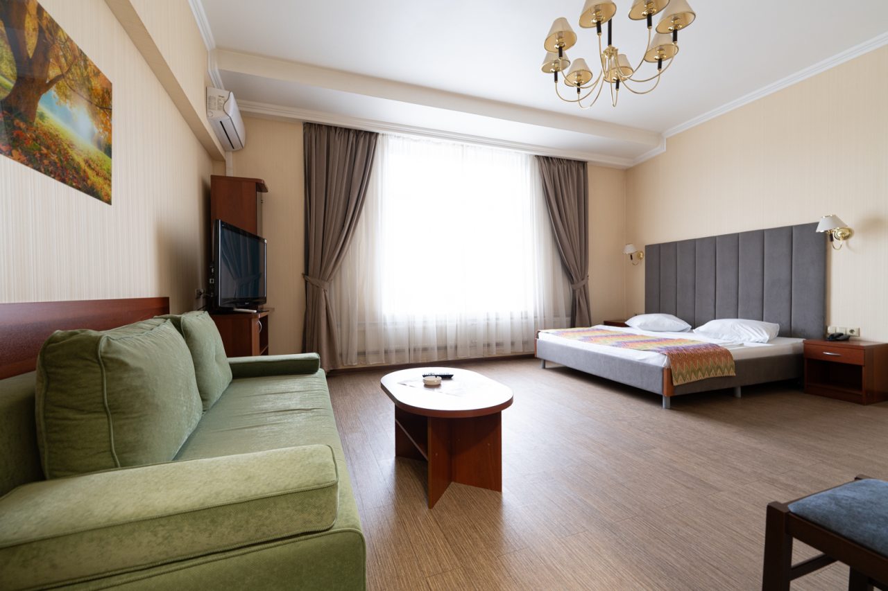 Номерной фонд предлагает категории от «Стандарта» до «Люкса» с джакузи. Во всех уютных номерах установлена комфортабельная мягкая и корпусная мебель, телевизор, работает бесплатный высокоскоростной Wi-Fi. Собственные ванные комнаты оборудованы стандартным набором сантехники, предоставляются наборы полотенец и средства личной гигиены.