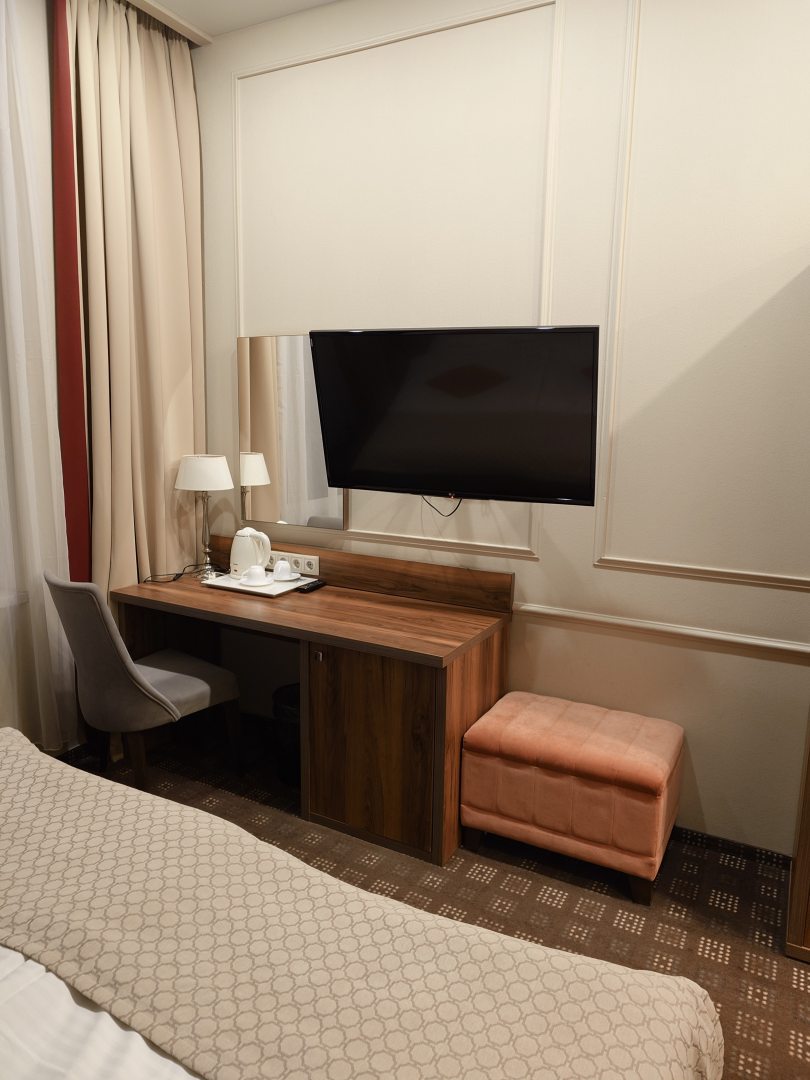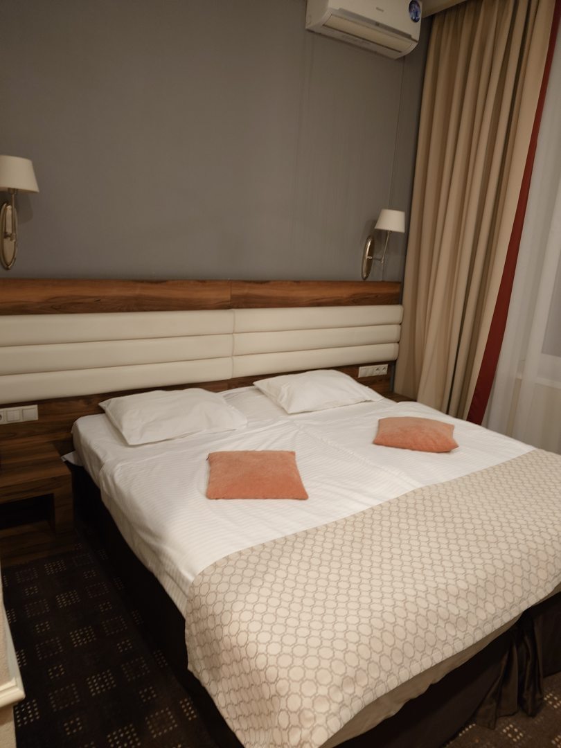 136 номеров категории «Стандарт», «Комфорт» и «Люкс» составляют номерной фонд. Каждый из них радует глаз изящным оформлением и спокойной цветовой гаммой. Для того, чтобы отдых был приятным, номера оснащены собственной ванной комнатой, холодильником, телефоном и телевизором. Уборка и смена полотенец провидится ежедневно, а смена постельного белья по стандарту — 1 раз в 3 дня. Во время проживания можно пользоваться услугами Wi-Fi.