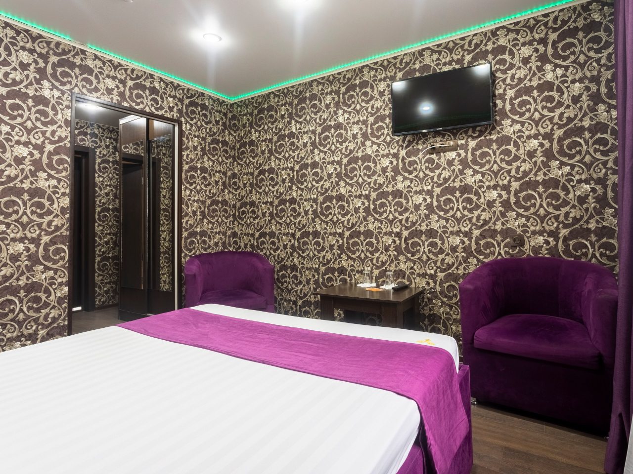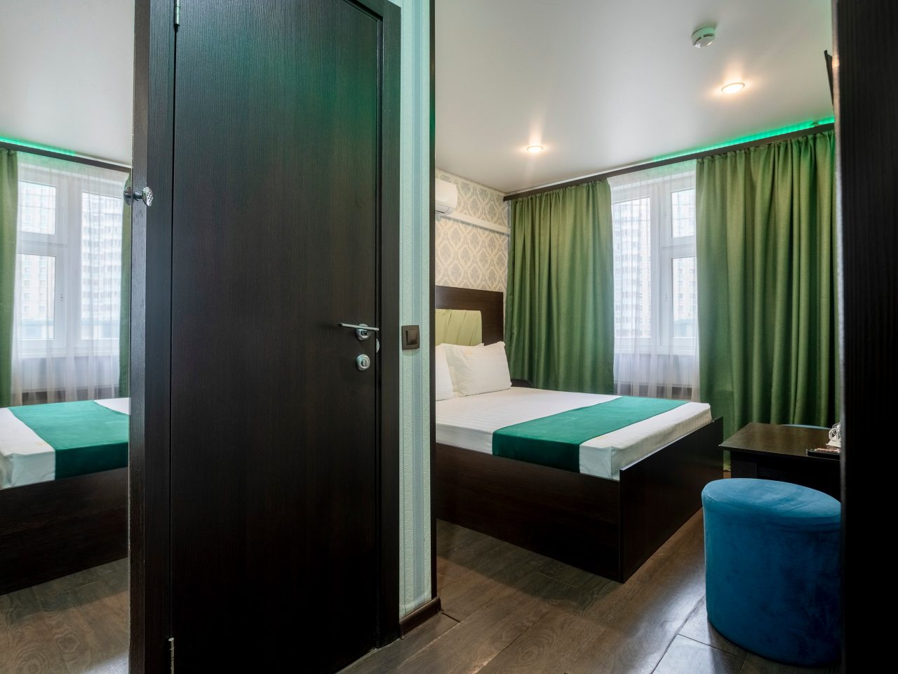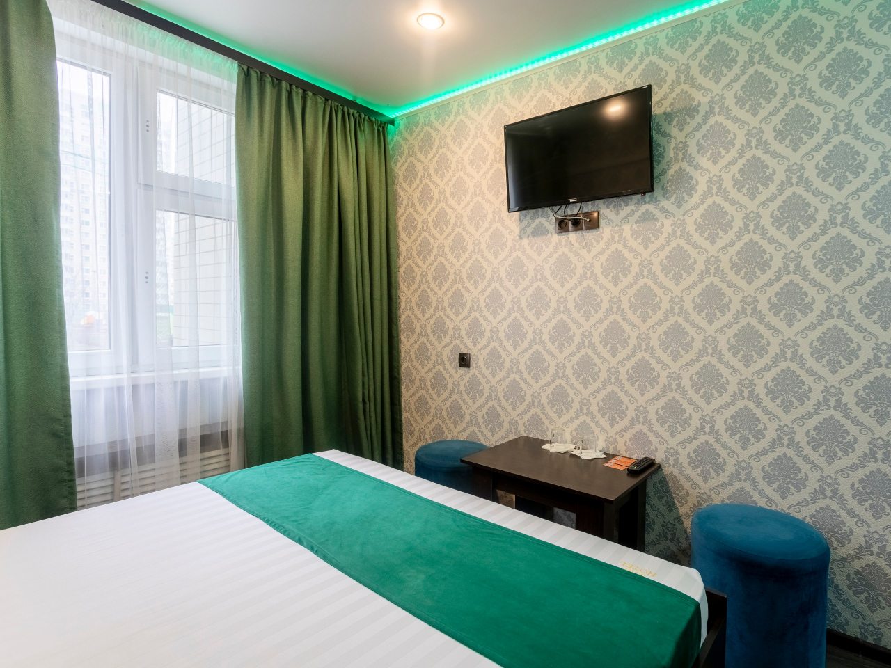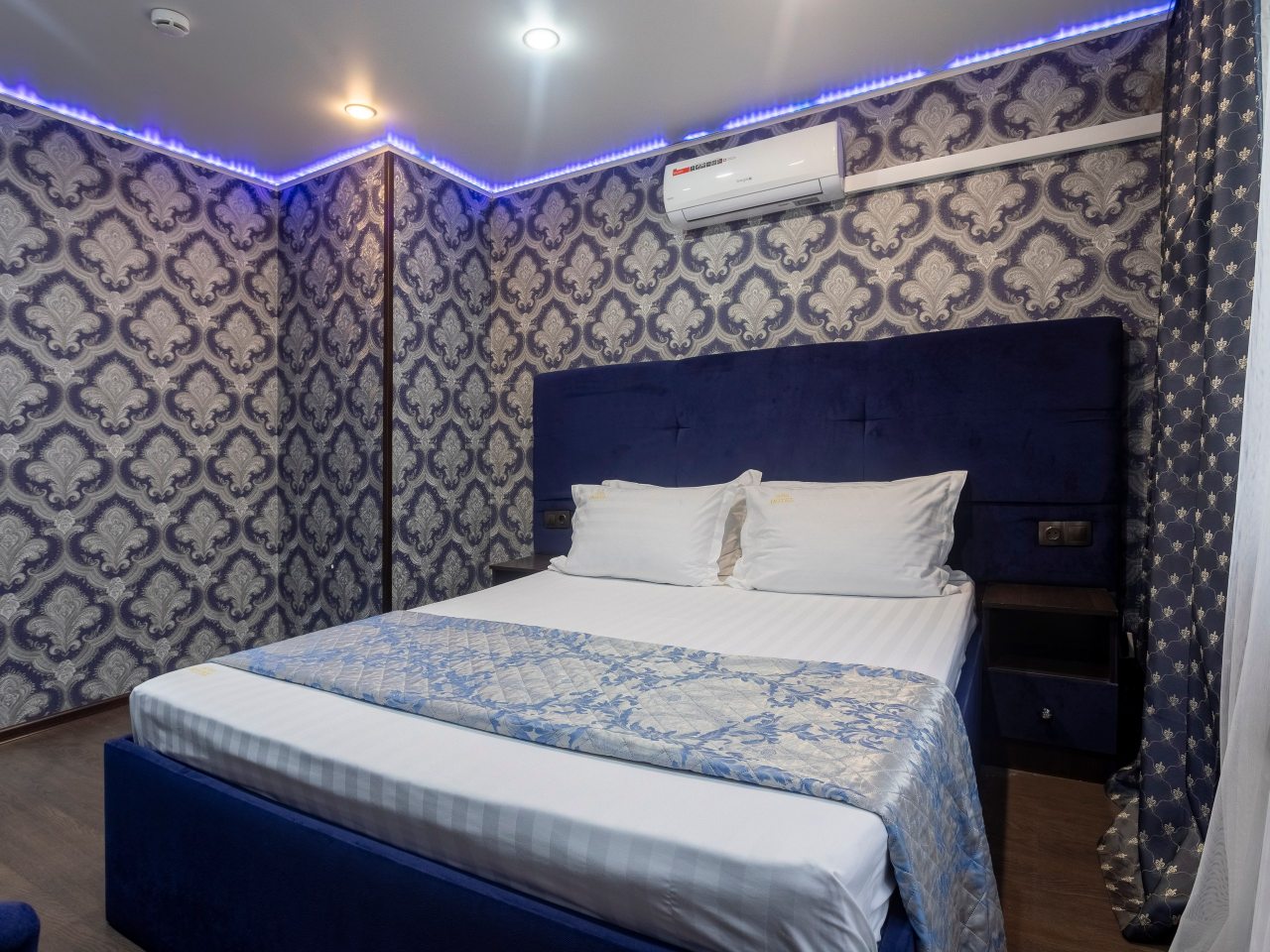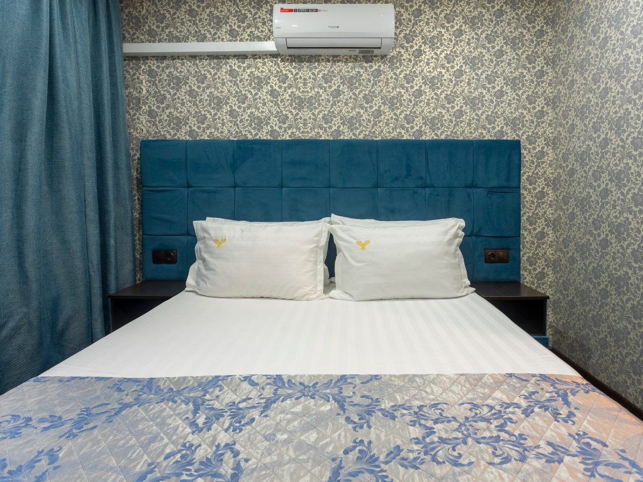 Для размещения представлены номера категории «Стандарт» вместимостью от одного до двух гостей. Все варианты укомплектованы качественной мебелью и техникой для приятного времяпровождения и отдыха: двуспальная кровать, кондиционер, телевизор. В собственном санузле установлена необходимая сантехника и есть индивидуальные средства гигиены.
