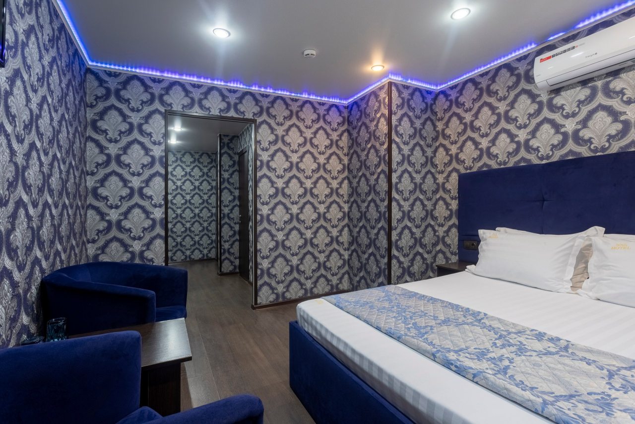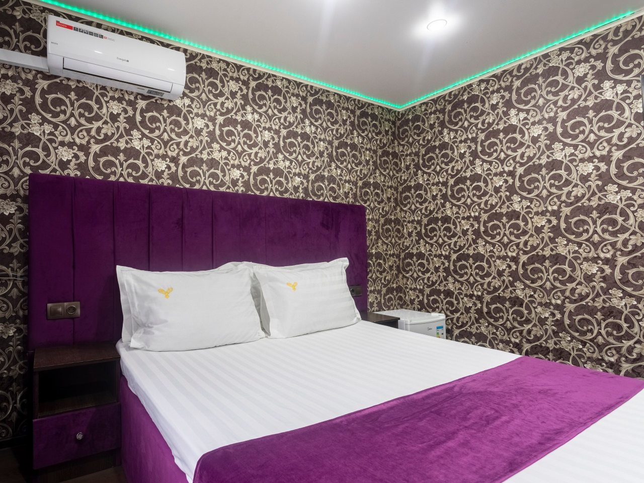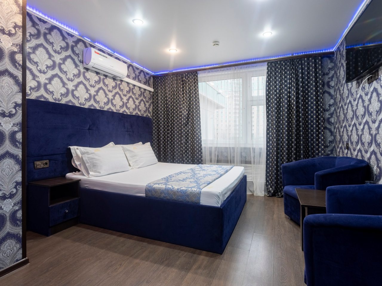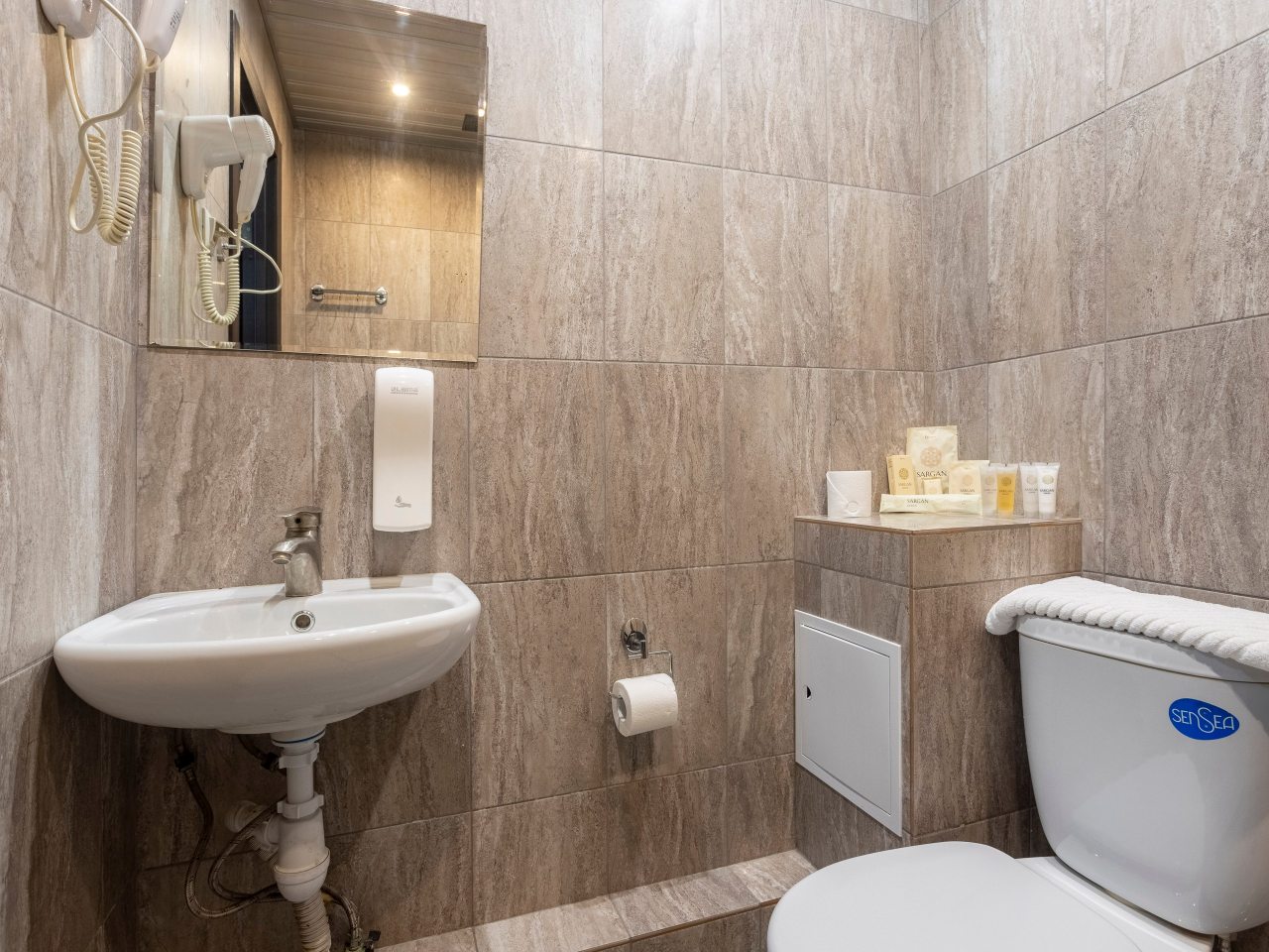Для размещения представлены номера категории «Стандарт» вместимостью от одного до двух гостей. Все варианты укомплектованы качественной мебелью и техникой для приятного времяпровождения и отдыха: двуспальная кровать, кондиционер, телевизор. В собственном санузле установлена необходимая сантехника и есть индивидуальные средства гигиены.