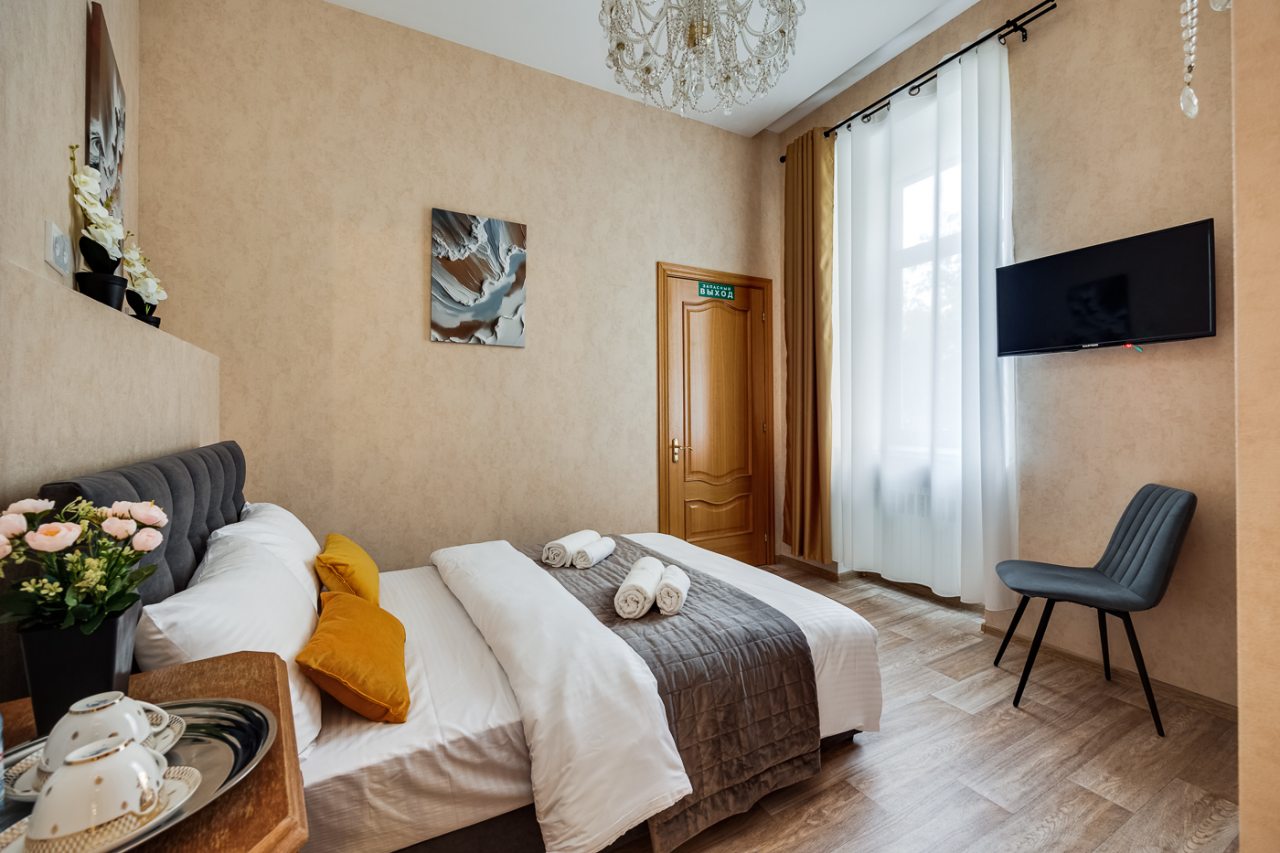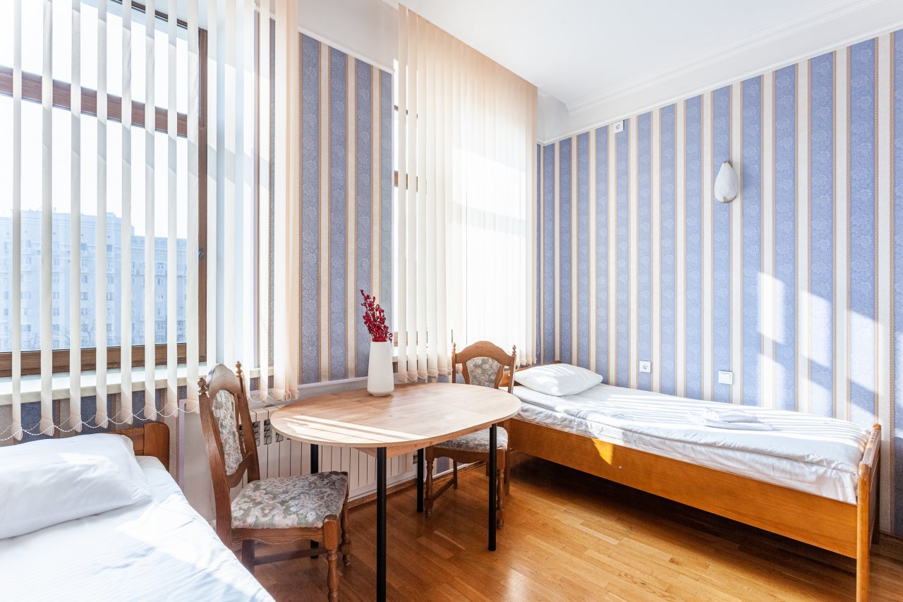 К размещению подготовлены уютные и светлые номера категории «Стандарт». Они выполнены в современном стиле и укомплектованы: двуспальной и односпальной кроватями, телевизором для просмотра любимых сериалов и передач, прикроватными тумбочками, обеденным столом. В санузле установлена необходимая сантехника.