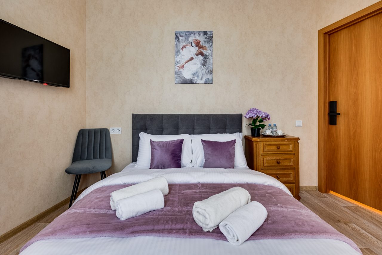 Бронировали номер гостиницы заранее и по приезду не было никаких сюрпризов. Встретили приветливо, быстро заселили и мы смогли отдохнуть после дороги. Номер Полулюкс комфортный, немного маловат, но на фотографиях был такой же. Места двоим хватило. Очень понравилось наличие собственной ванной комнаты с индивидуальными пакетиками шампуня и геля для душа, а также фена. Локация удобная, поблизости множество достопримечательностей и станция метро.