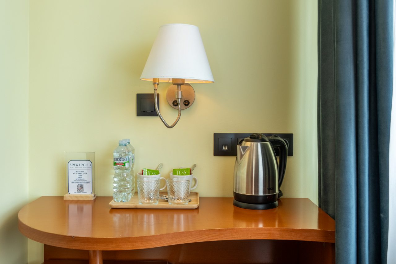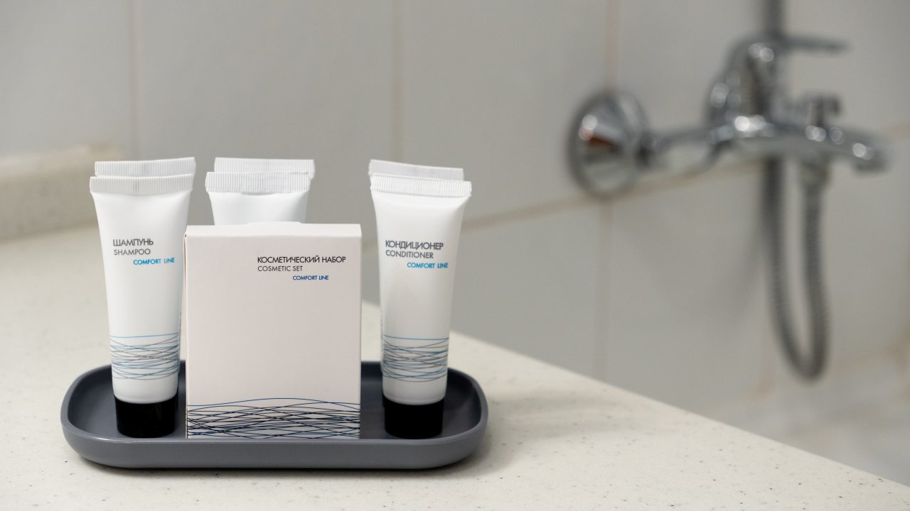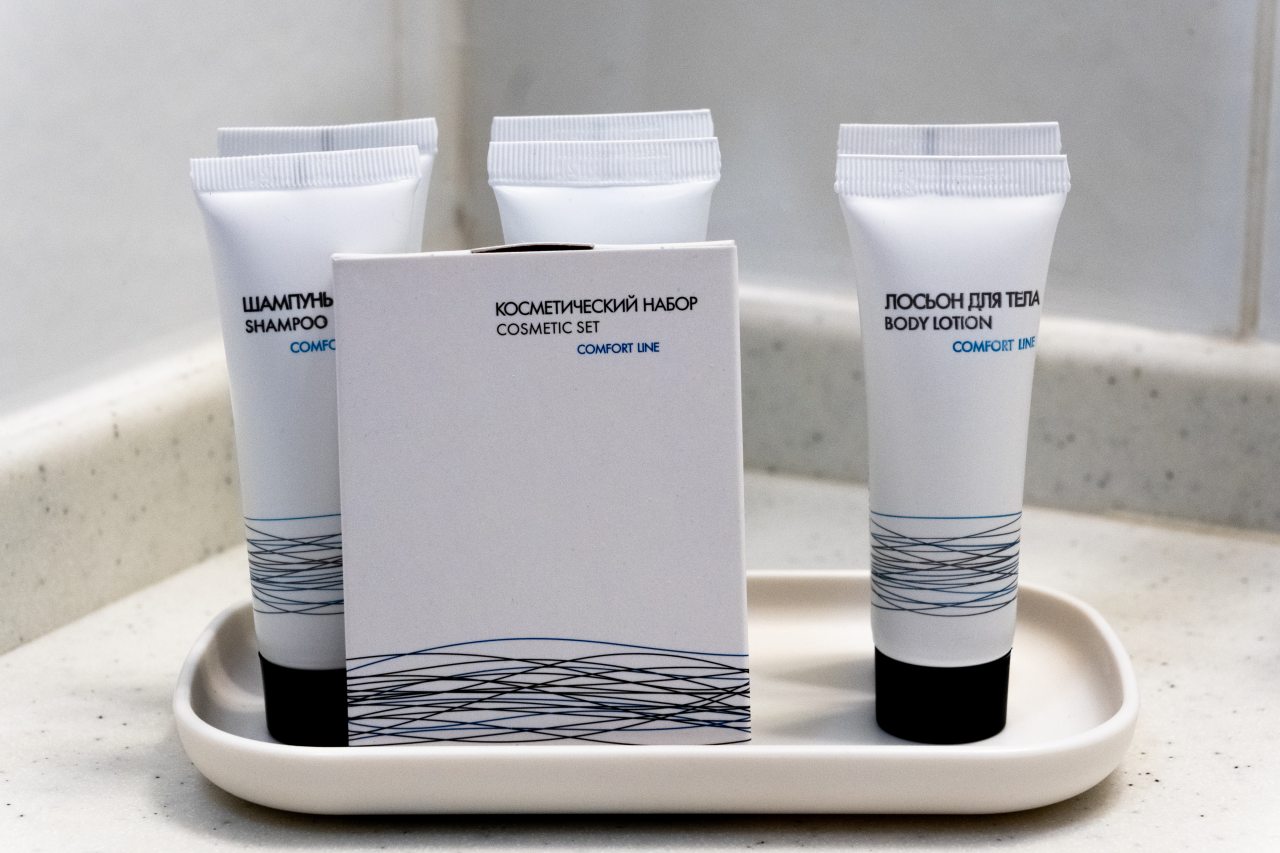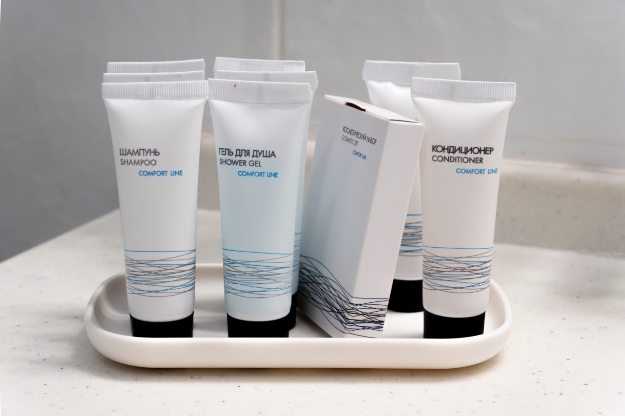Все принадлежности для душа были. Бутылка воды, чай, кофе, чайник, утюг в номере - всё было. Фото не делала, но, поверьте, осталась довольна. В следующий раз,если поеду на концерт в Лужники, остановлюсь только в этом отеле!
