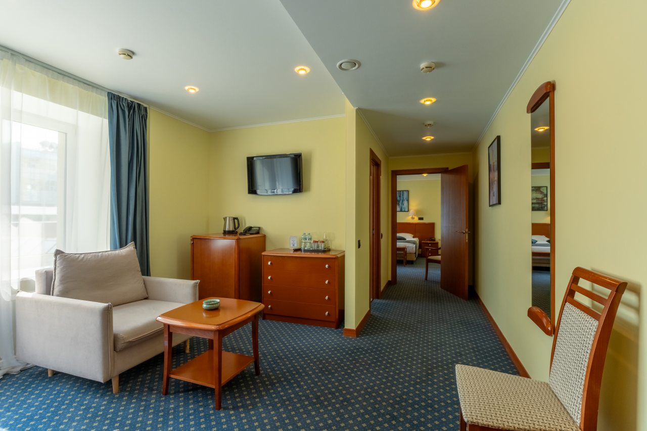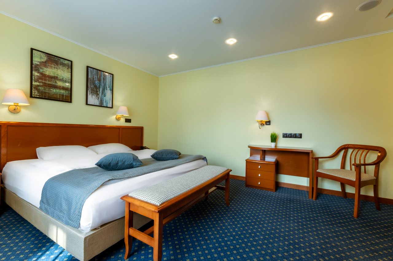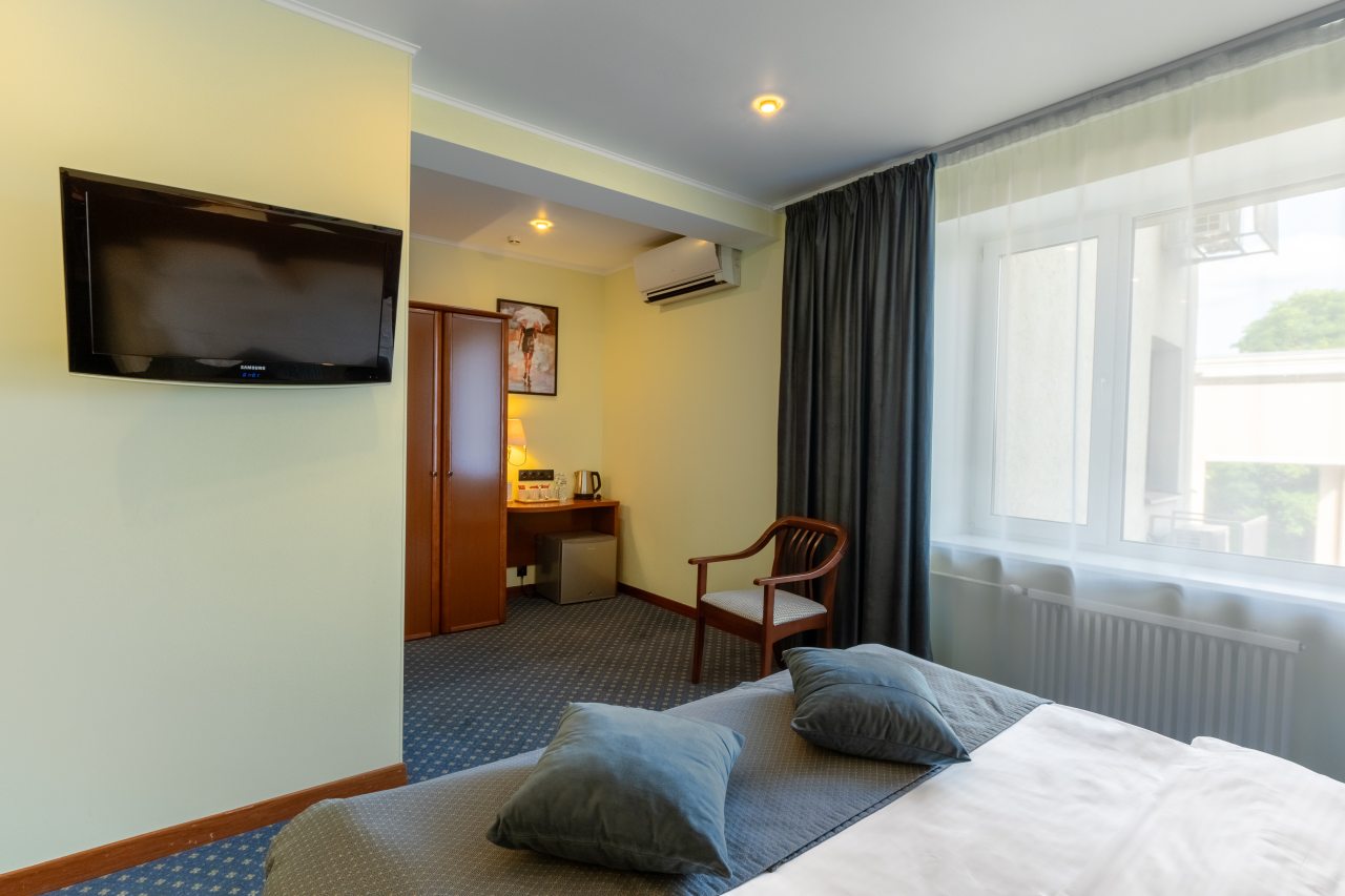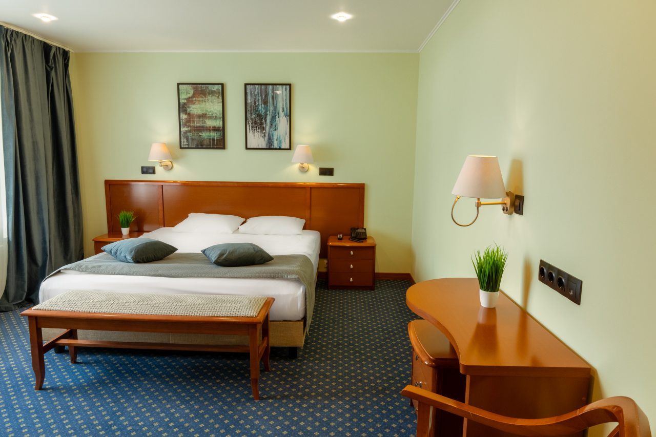 В отеле недавно открылись 32 новых номера категории «Комфорт» и «Полулюкс» в современном дизайне с новой мебелью, оборудованием и свежим ремонтом. На данный момент в распоряжении гостей 60 вариантов размещения классов «Стандарт», «Комфорт», «Делюкс», «Полулюкс», «Люкс», «Семейный». Все они укомплектованы феном, телевизором, кондиционером, сейфом, телефоном. Проведен быстрый Wi-Fi. По запросу могут быть предоставлены утюг, гладильная доска, зубной набор, швейный набор, шапочка для душа, расческа, бритвенный набор, беруши.