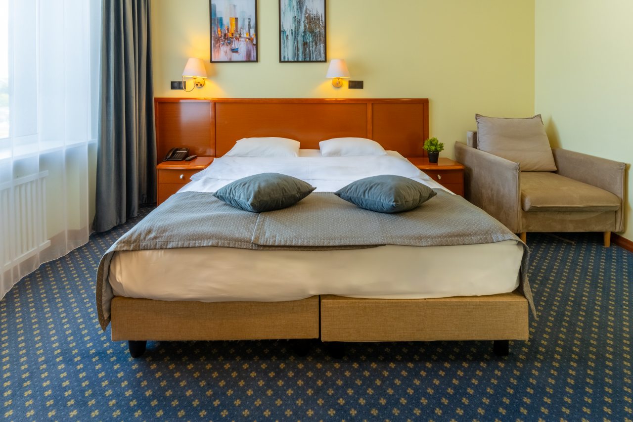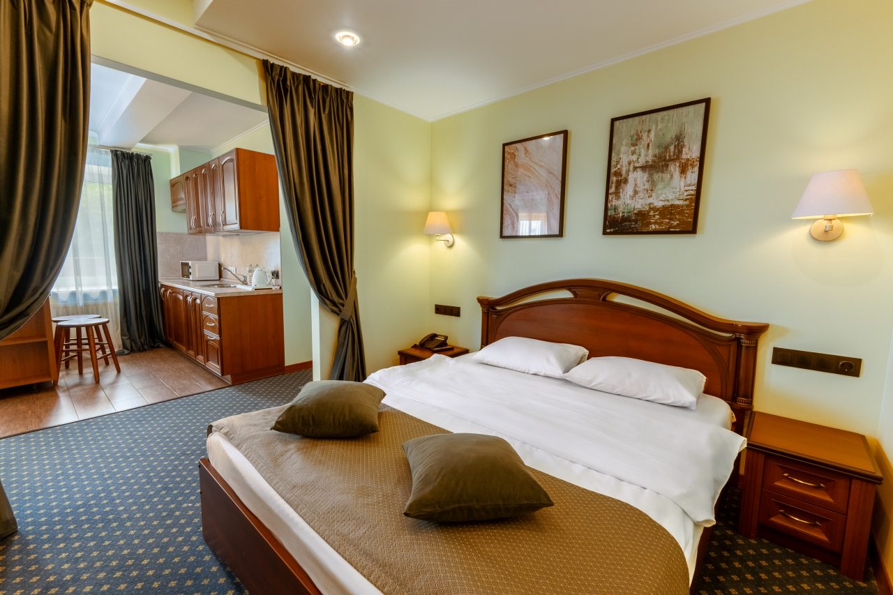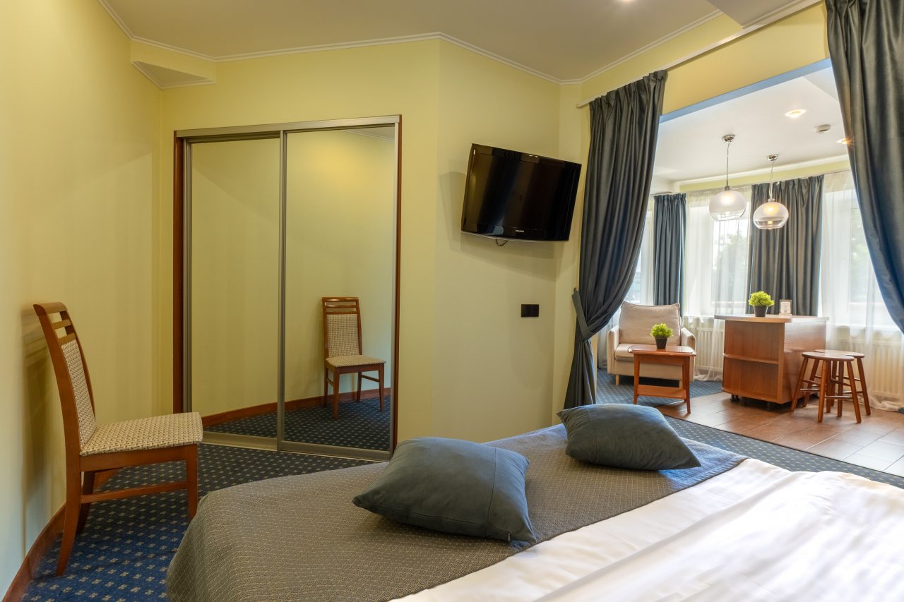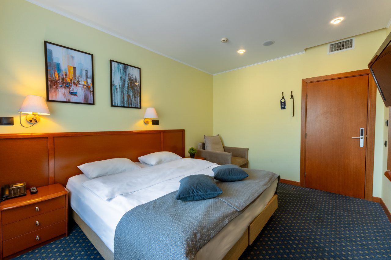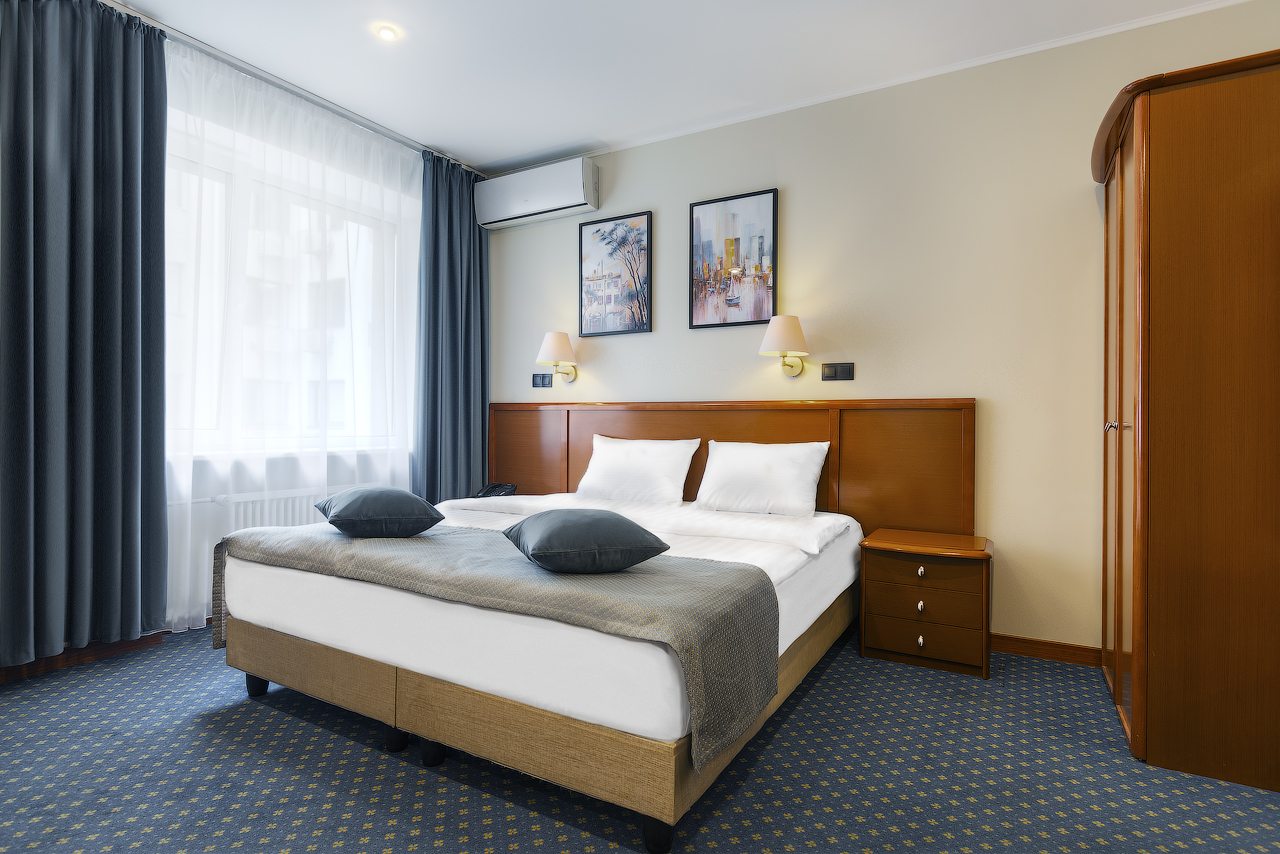 В отеле недавно открылись 32 новых номера категории «Комфорт» и «Полулюкс» в современном дизайне с новой мебелью, оборудованием и свежим ремонтом. На данный момент в распоряжении гостей 60 вариантов размещения классов «Стандарт», «Комфорт», «Делюкс», «Полулюкс», «Люкс», «Семейный». Все они укомплектованы феном, телевизором, кондиционером, сейфом, телефоном. Проведен быстрый Wi-Fi. По запросу могут быть предоставлены утюг, гладильная доска, зубной набор, швейный набор, шапочка для душа, расческа, бритвенный набор, беруши.