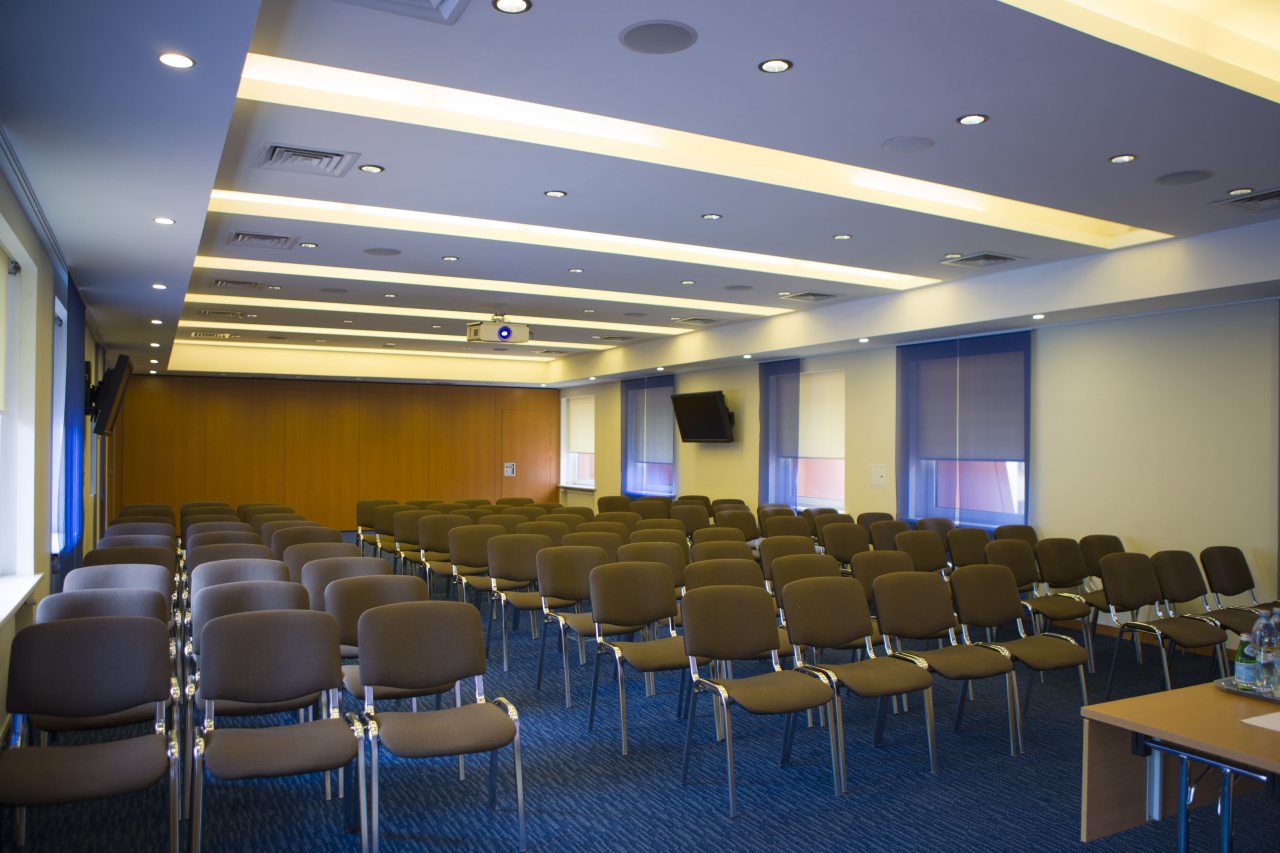 Площадь конференц-зала - 192 кв.м., размещение - до 200 человек.