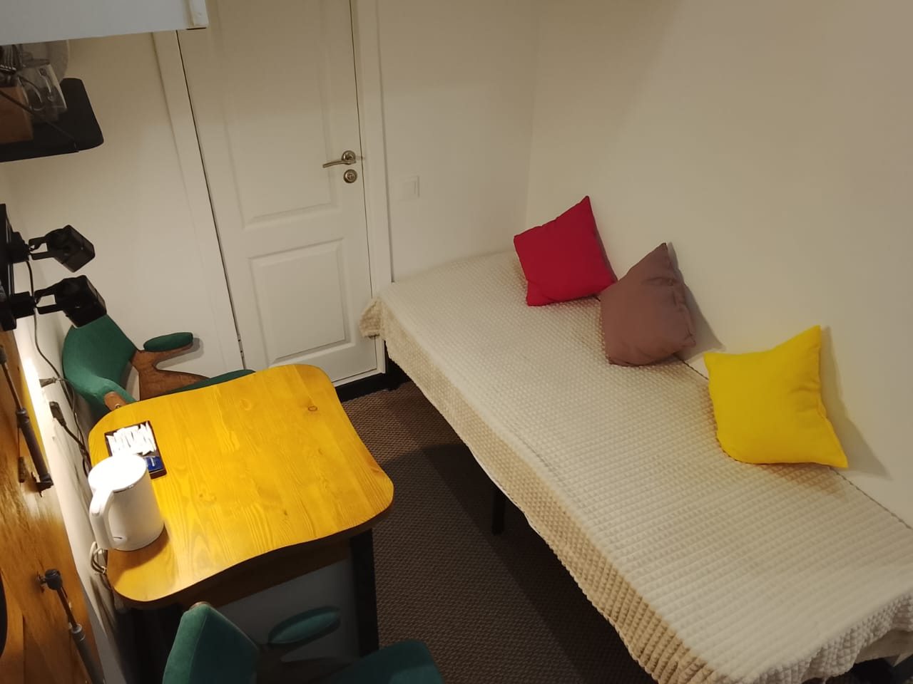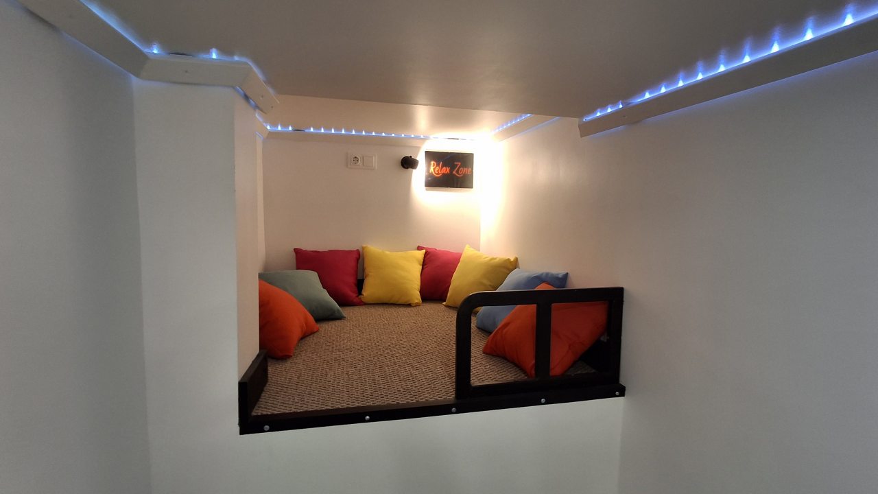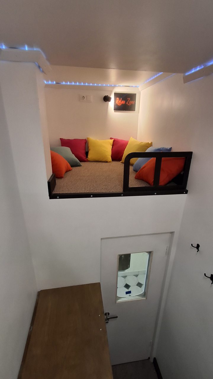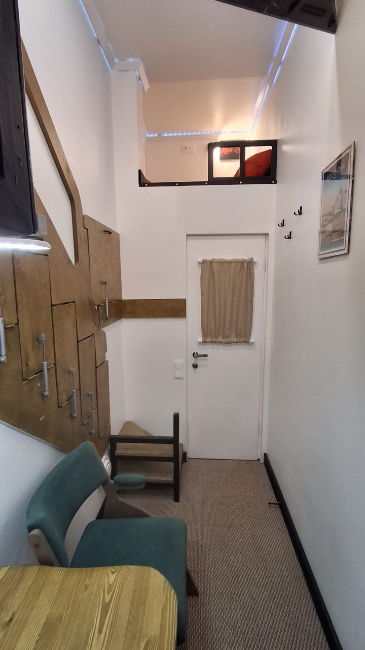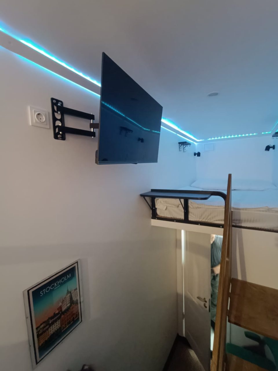 Для проживания предлагаются двухместные капсульные номера-лофт со всеми удобствами: двуспальной кроватью, бра, светильниками. Возле кровати имеются розетки для удобной подзарядки. Вечером можно посмотреть любимые программы по телевизору. Доступна точка доступа Wi-Fi. Гладильные принадлежности на этаже в общем пользовании. В ванной комнате есть туалет, душ, фен, набор полотенец, тапочки.