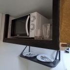 Также в номерах есть микроволновая печь, посуда и столовые приборы. На этаже можно найти холодильный шкаф, СВЧ-печь, кулер, кофемашину, электрический чайник. Перекусить предлагается в кафе «BBQ kitchen».