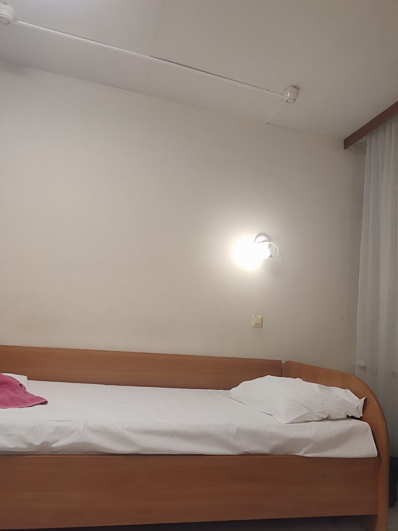 Расположение рядом с метро.В целом номер хороший.Туалет и ванна общие ещё с одним номером,очереди не было),чисто. Постельное Белоснежное,свежее, только под простыню лежала грязная стеклянная трубка, ребенок заскочив на кровать ,чуть не раздавил её и мог бы пораниться( фото прилагается). Непонятно,как горничная меняла бельё и не заметила,или может быть это её...в общем,этот момент очень неприятен.
