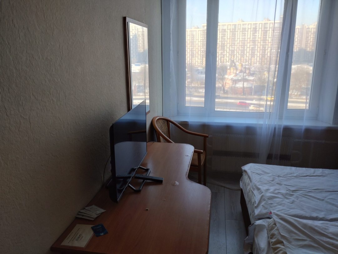 Местоположение удобное потому что рядом станция метро. 200 метров примерно от отеля есть перекрёсток магазин продуктов и отличный ресторан «Мосплов». В номере телевизор, нормальная кровать и холодильник.
