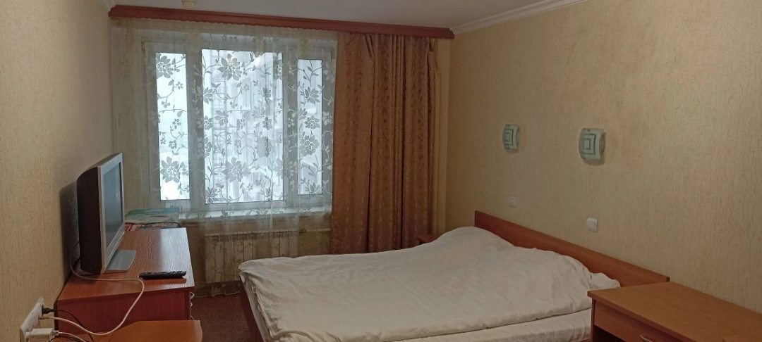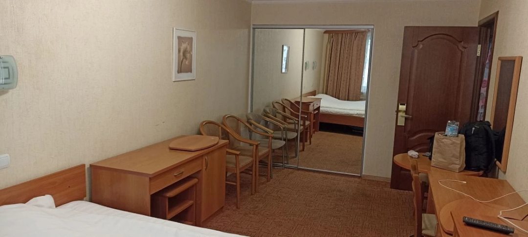Номер заявлен De luks был с двуспальной кроватью.Сначала дали номер с диваном полуторным,на ресепшене предложили на выбор другой номер.Спасибо ребятам на ресепшене решили все быстро.Полотенца и принадлежности все было в наличии,телевизор работал